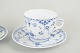 Sæt bestående af to kaffekopper med tilhørende underkopper i Musselmalet halvblonde. Klassiske riflede former med blondekant og håndmalet koboltblå dekoration. Et elegant kaffesæt fra mellemkrigstiden.