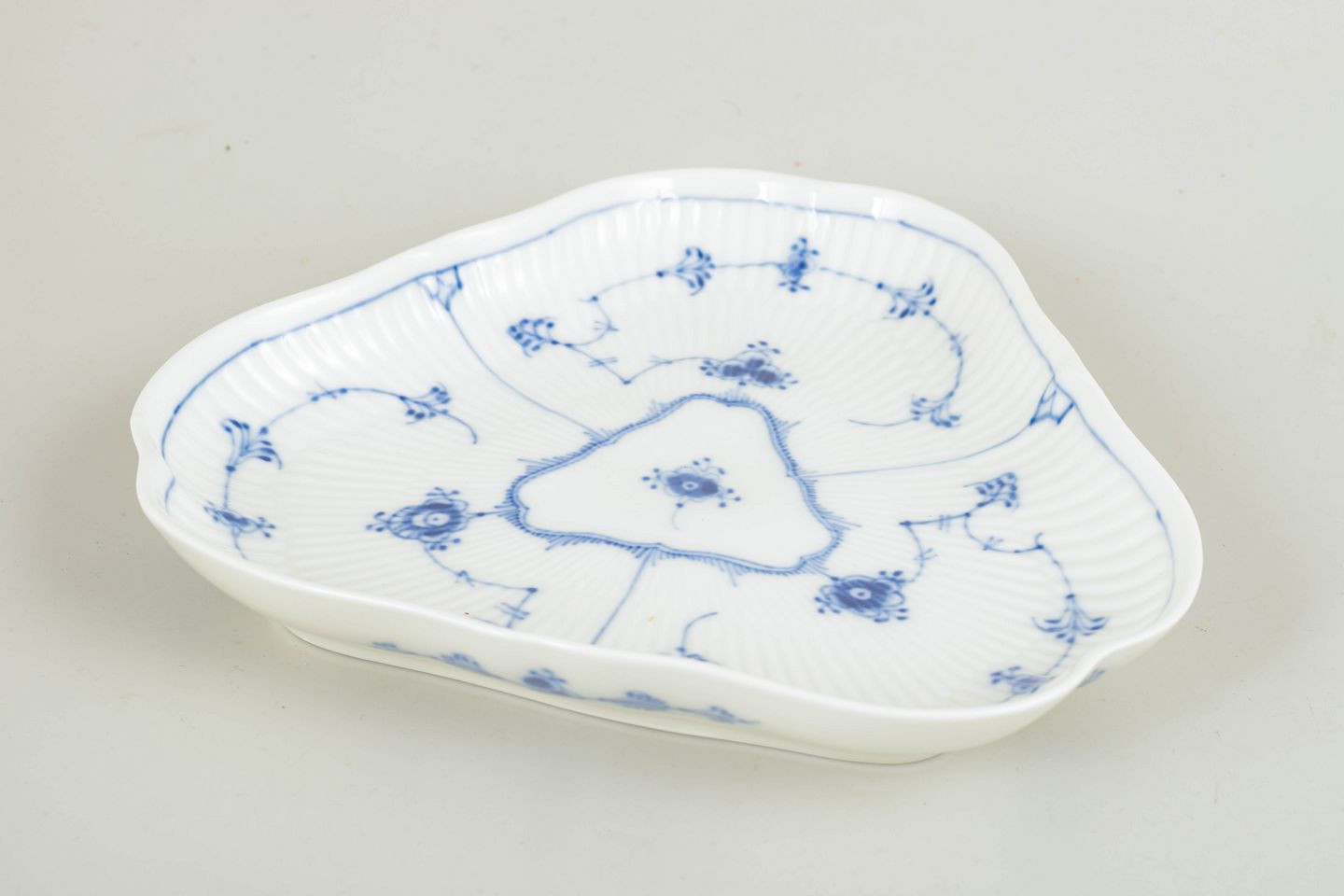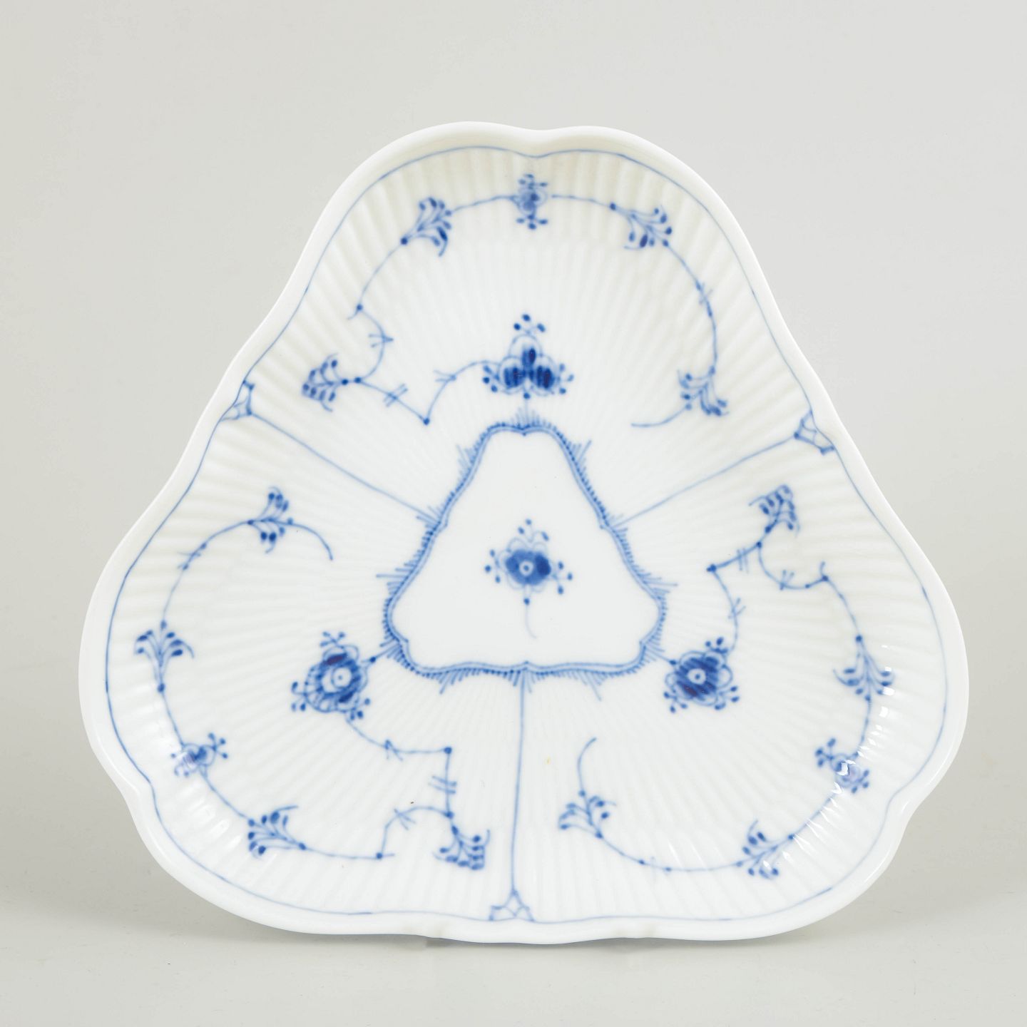 Royal Copenhagen Musselmalet Riflet trekantet fad, 1965.