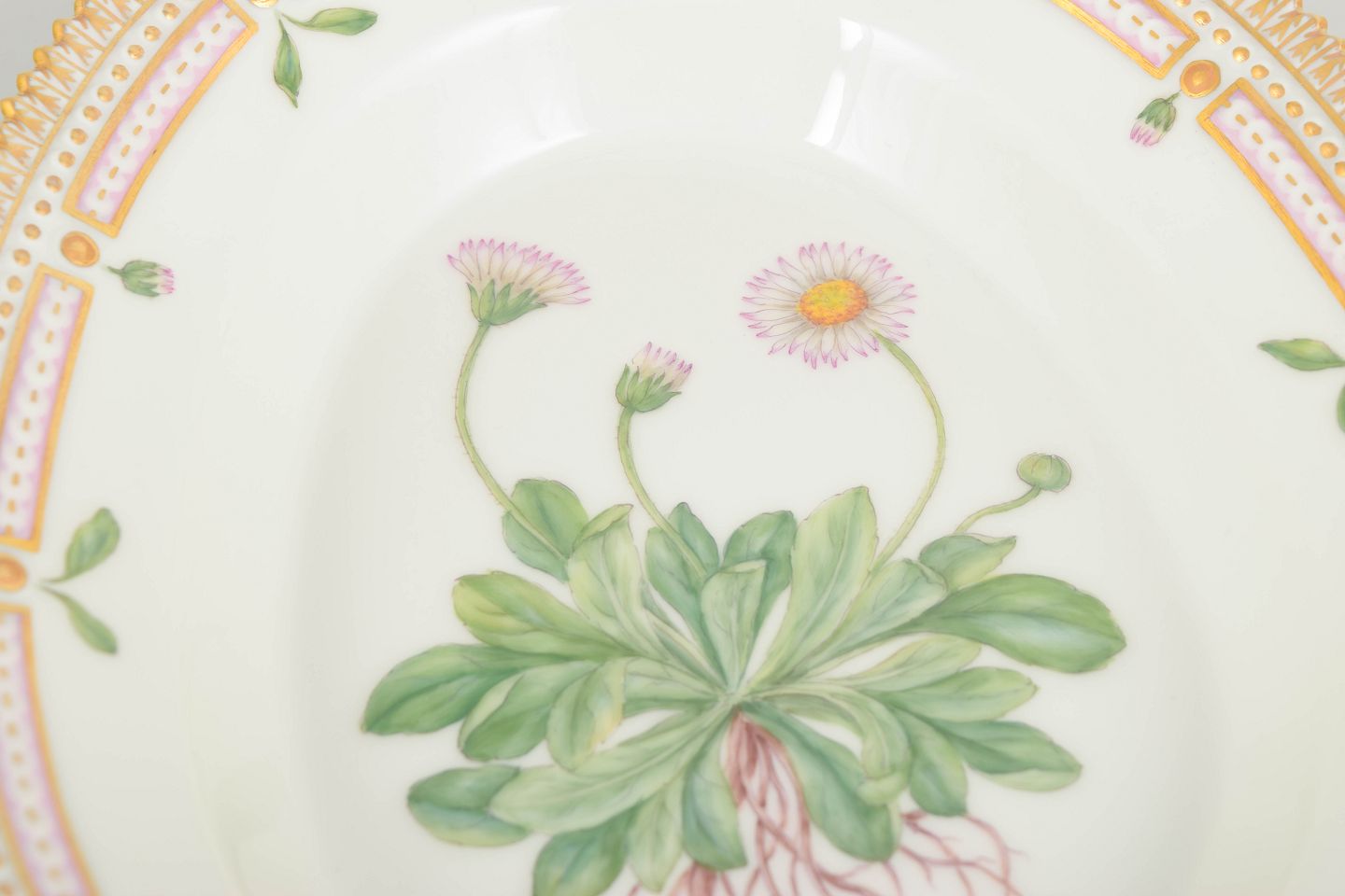 Bio: The Flora Danica service was introduced in 1790 and is regarded as one of Royal Copenhagen’s most prestigious productions. The decoration is based on the monumental botanical work Flora Danica and is known for its high level of detail and exceptional craftsmanship.