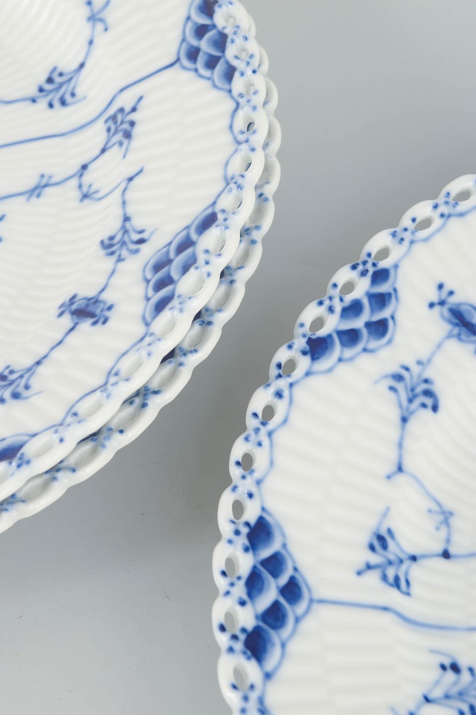 Blue Fluted Full Lace represents the most elaborate version of Royal Copenhagen’s iconic Blue Fluted pattern and is renowned for its finely pierced lace border, requiring exceptional craftsmanship. In the mid-1960s, production continued in accordance with long-established traditions, with each piece individually hand-painted and finished to a high artisanal standard.