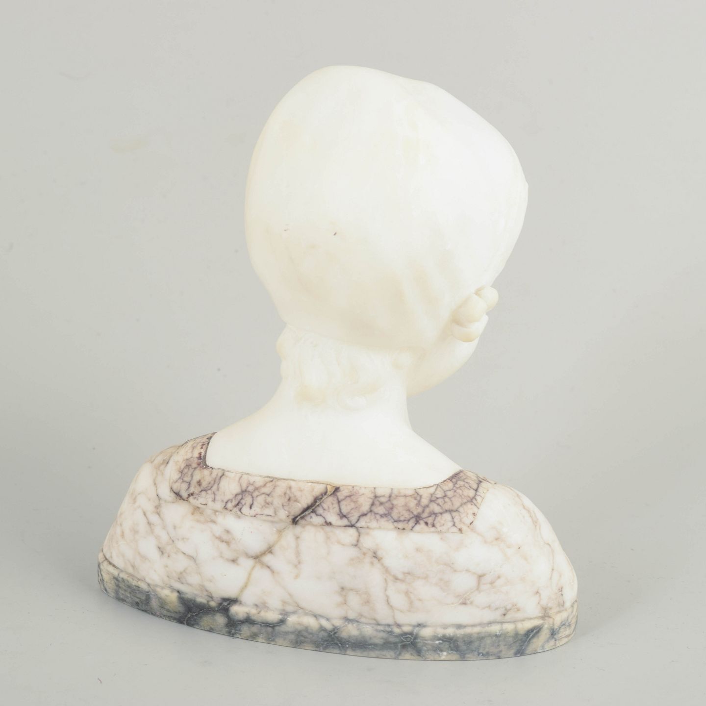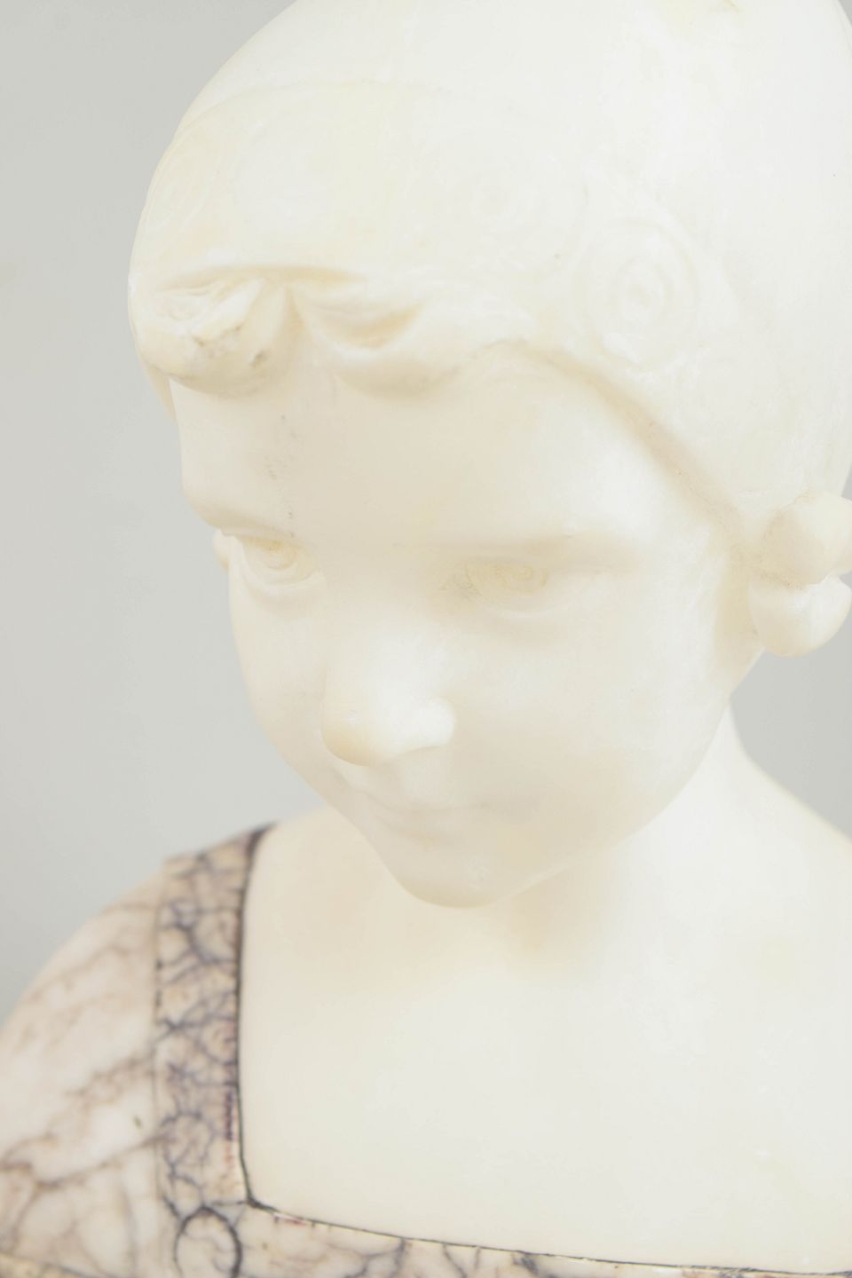 Around 1900, Art Nouveau sculpture favoured idealised portraits and a calm, harmonious modelling, combining naturalistic features with a refined, stylised elegance. Small marble busts were popular decorative interior objects, valued for their delicate surface work and the period’s poetic approach to portraiture.