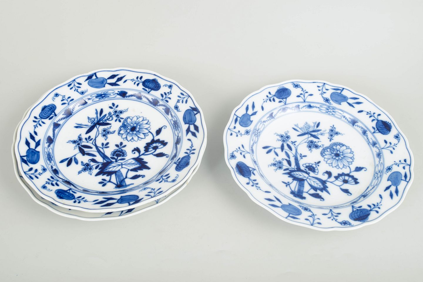 Meissen, Blue Onion dinner plates, set of 3.