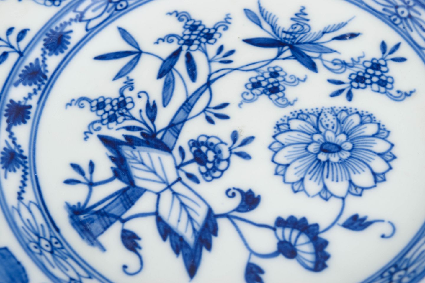 The Blue Onion pattern was introduced by Meissen in 1739 and was inspired by East Asian porcelain, featuring stylised floral and fruit motifs rendered in underglaze blue. It became one of the manufactory’s most enduring tableware designs. Around 1900, Meissen continued producing Blue Onion services of consistently high quality, with dinner plates forming a key part of the service and reflecting the manufactory’s long-standing standards of craftsmanship and decorative clarity.