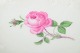 Lille ovalt fad i porcelæn dekoreret med håndmalet rosa rose i midten, omgivet af diskret reliefdekoration langs kanten. Klassisk udførelse fra Meissen med fin glasur og elegant formgivning, typisk for perioden.