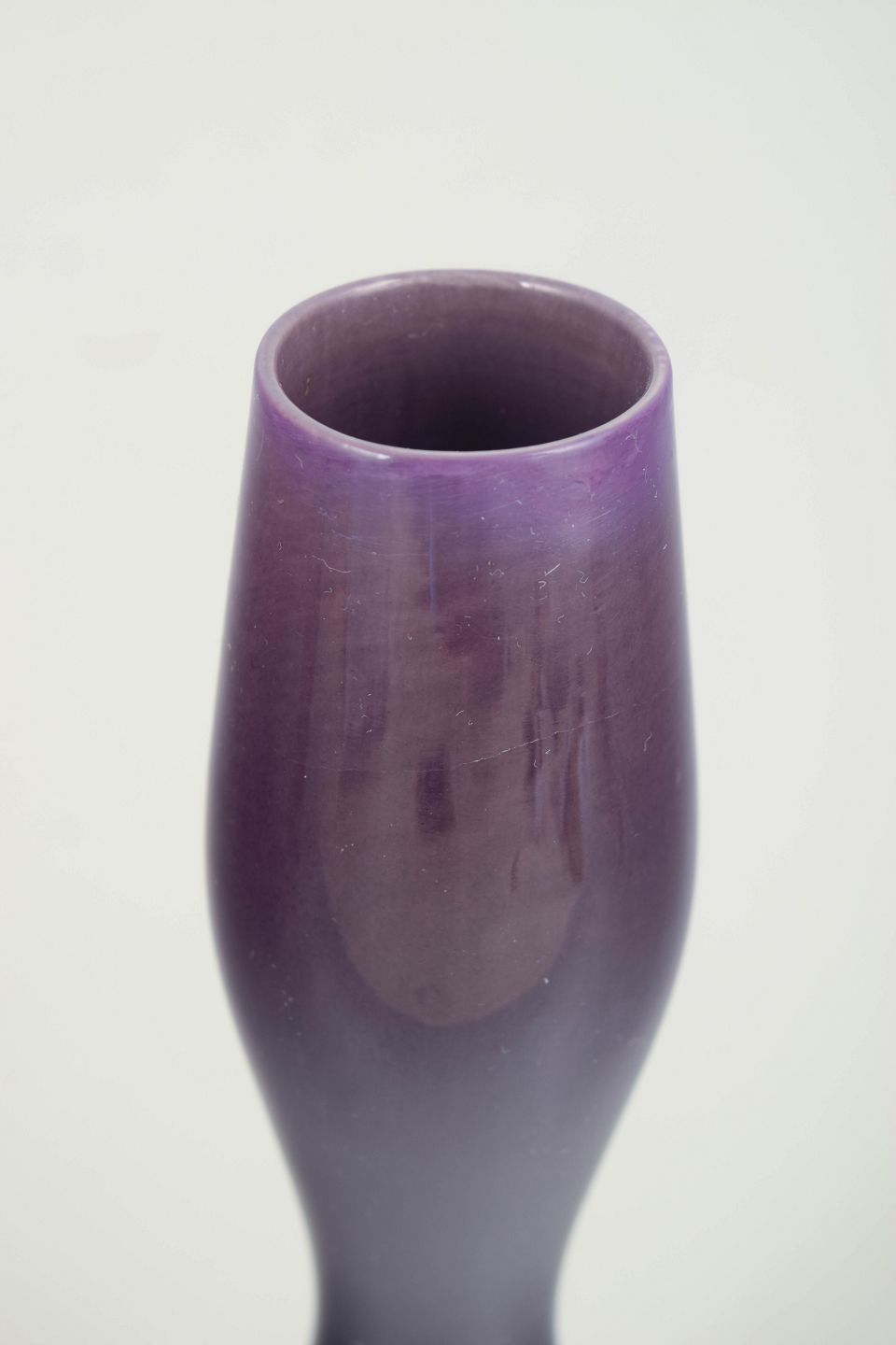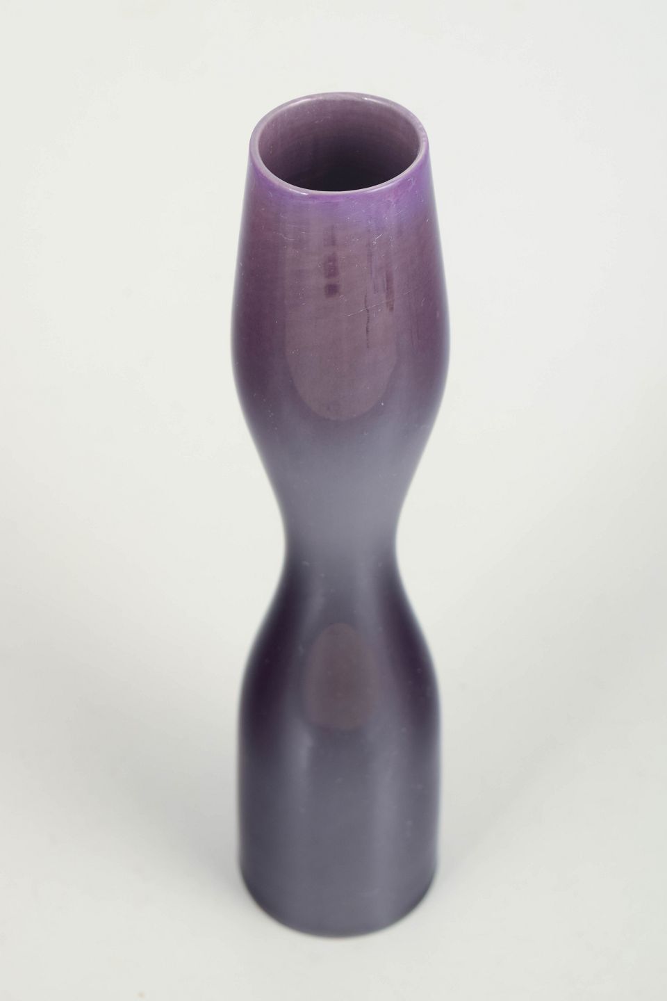 Slim, sculptural stoneware vase with a deep purple glaze and softly waisted centre. The form is typical of Stålhane’s mid-20th-century work, combining architectural clarity with refined glaze effects.