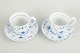 Two large mugs with matching saucers in hand-painted underglaze cobalt blue decoration in the classic Blue Fluted Plain pattern. Mug model 090 and saucer model 091. First quality.