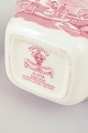 Kander i fajance fra Mason’s, dekoreret i rød transferware med landskabs- og arkitekturmotiver.