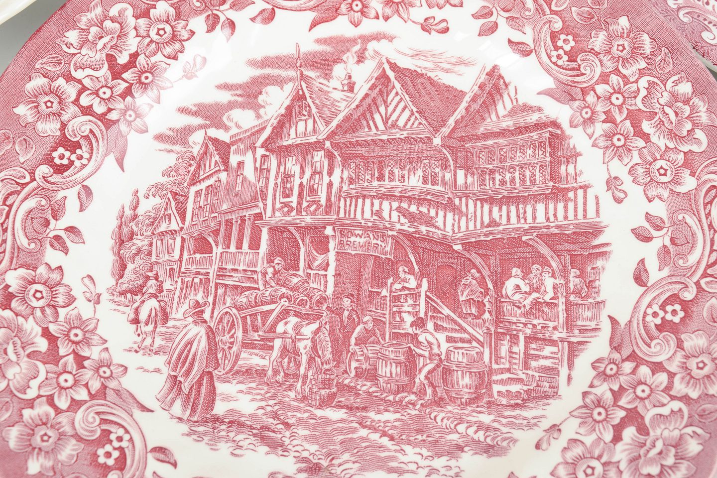 English faience production in the interwar period was characterised by a strong tradition of transferware decoration, particularly centred in the Staffordshire region. Makers such as Mason’s, Royal Warwick and related factories produced tableware featuring detailed landscape and historical scenes. Originally intended for everyday use, these plates are now valued for their decorative qualities and clear period character.