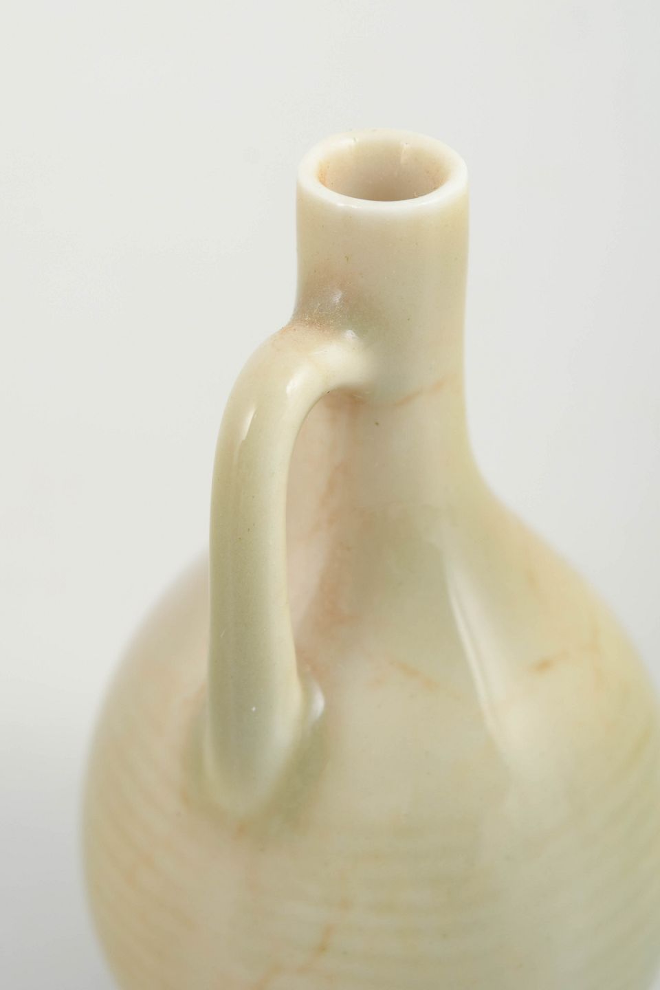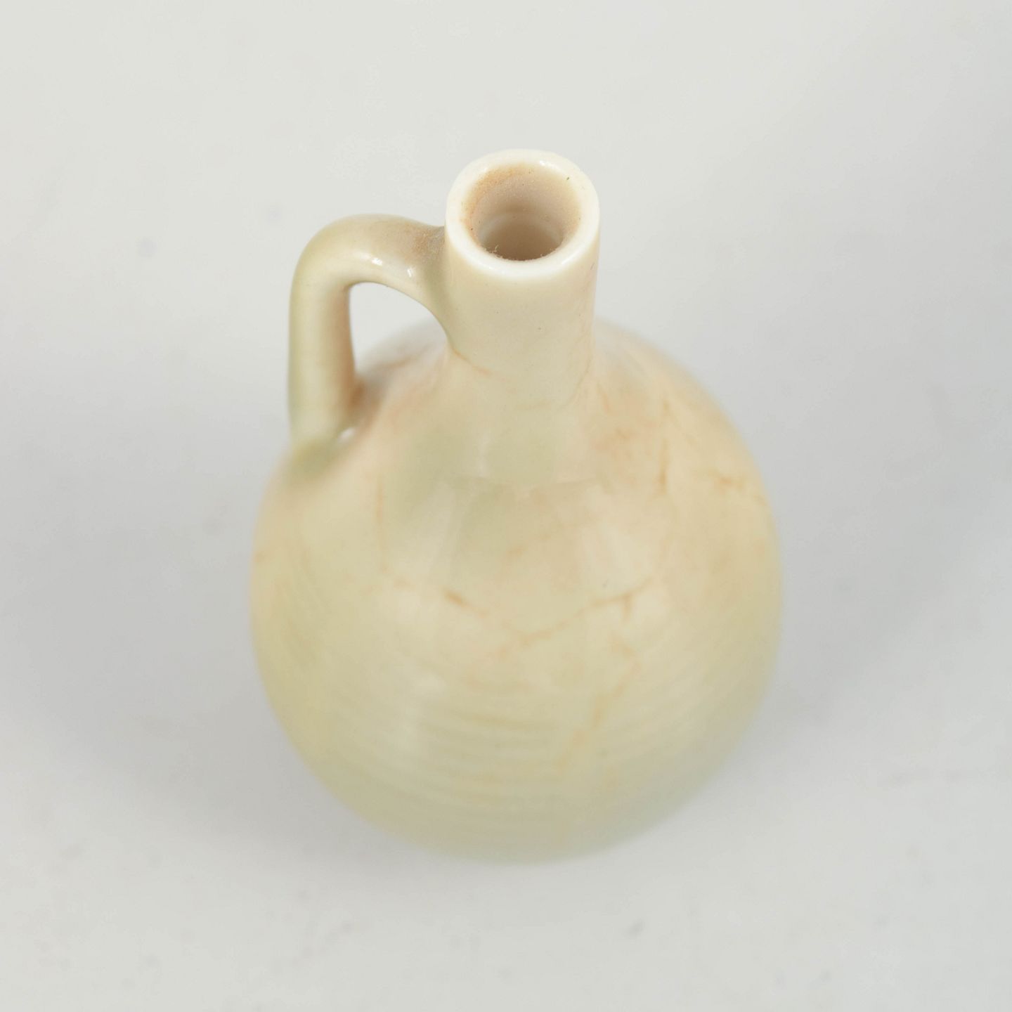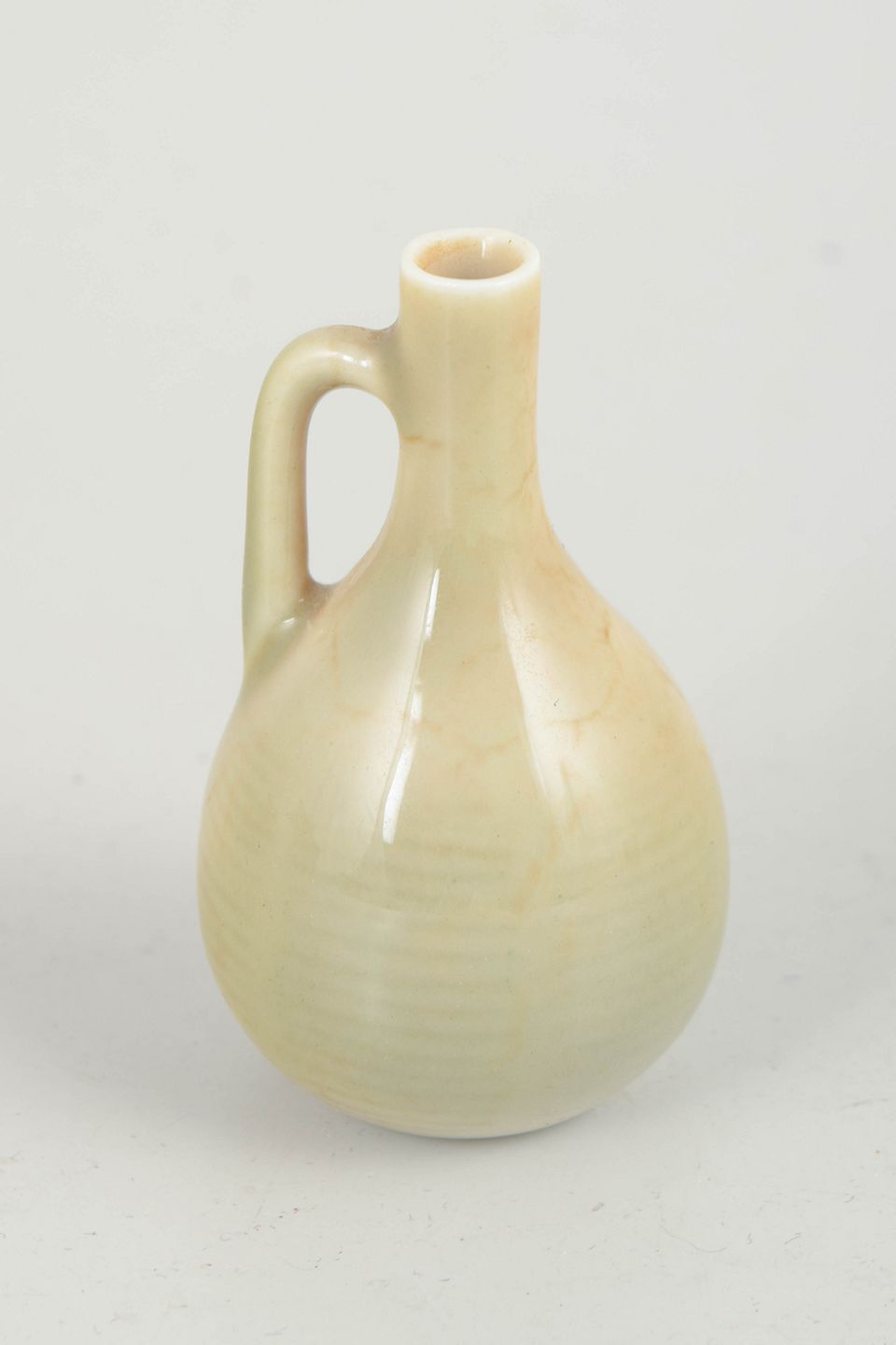 Small organically shaped miniature pitcher in glazed stoneware with a soft cream-coloured glaze. Signed to the base.