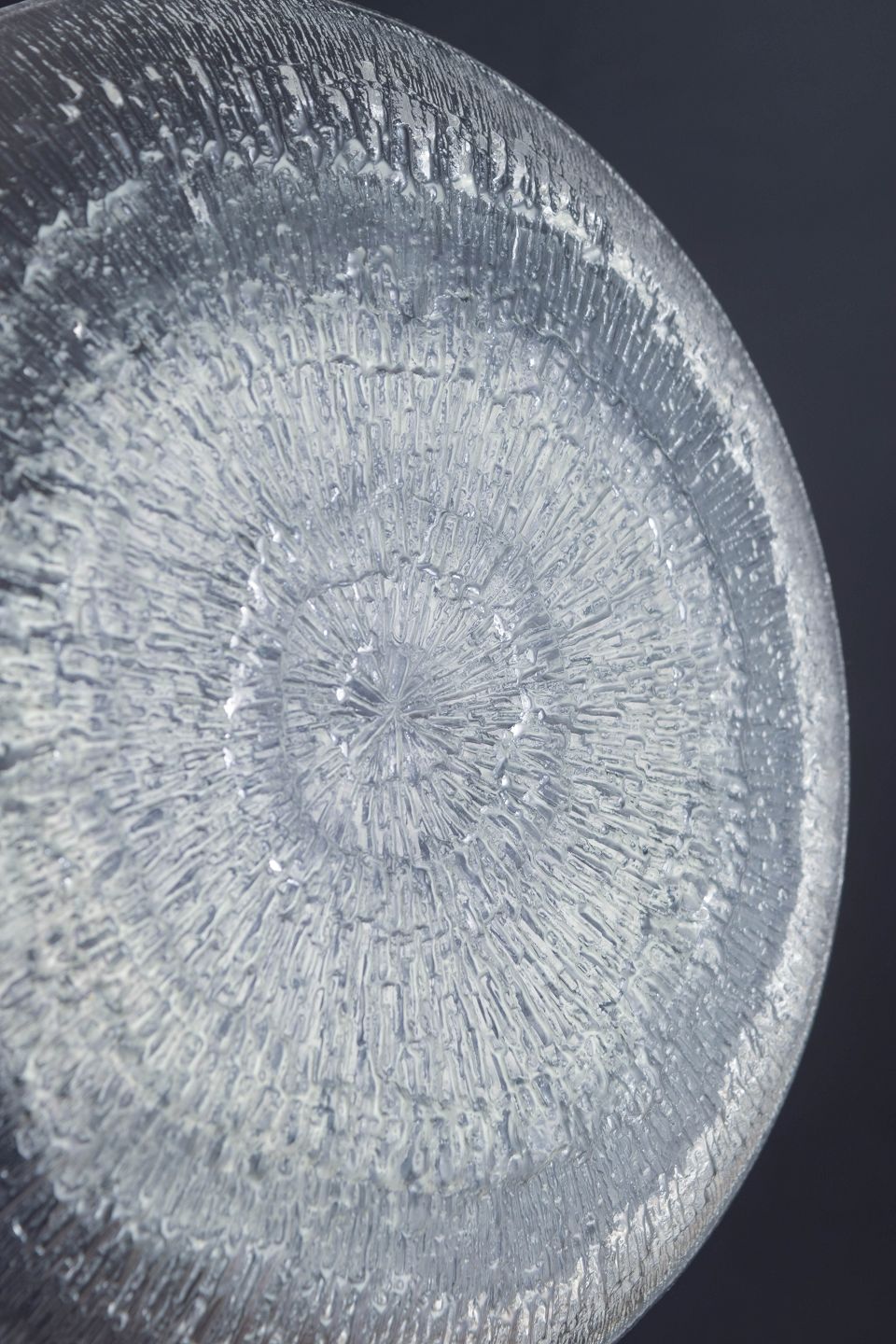 Tapio Wirkkala (1915–1985) was one of Finland’s most influential twentieth-century designers. He worked extensively for Iittala and gained international recognition for his work in glass, silver, wood, and graphic design. Wirkkala received several major international awards, including the Grand Prix at the Milan Triennale in 1951 and 1954. The Ultima Thule series, introduced in 1968, remains one of his most iconic designs and exemplifies his technical innovation in textured glass surfaces.