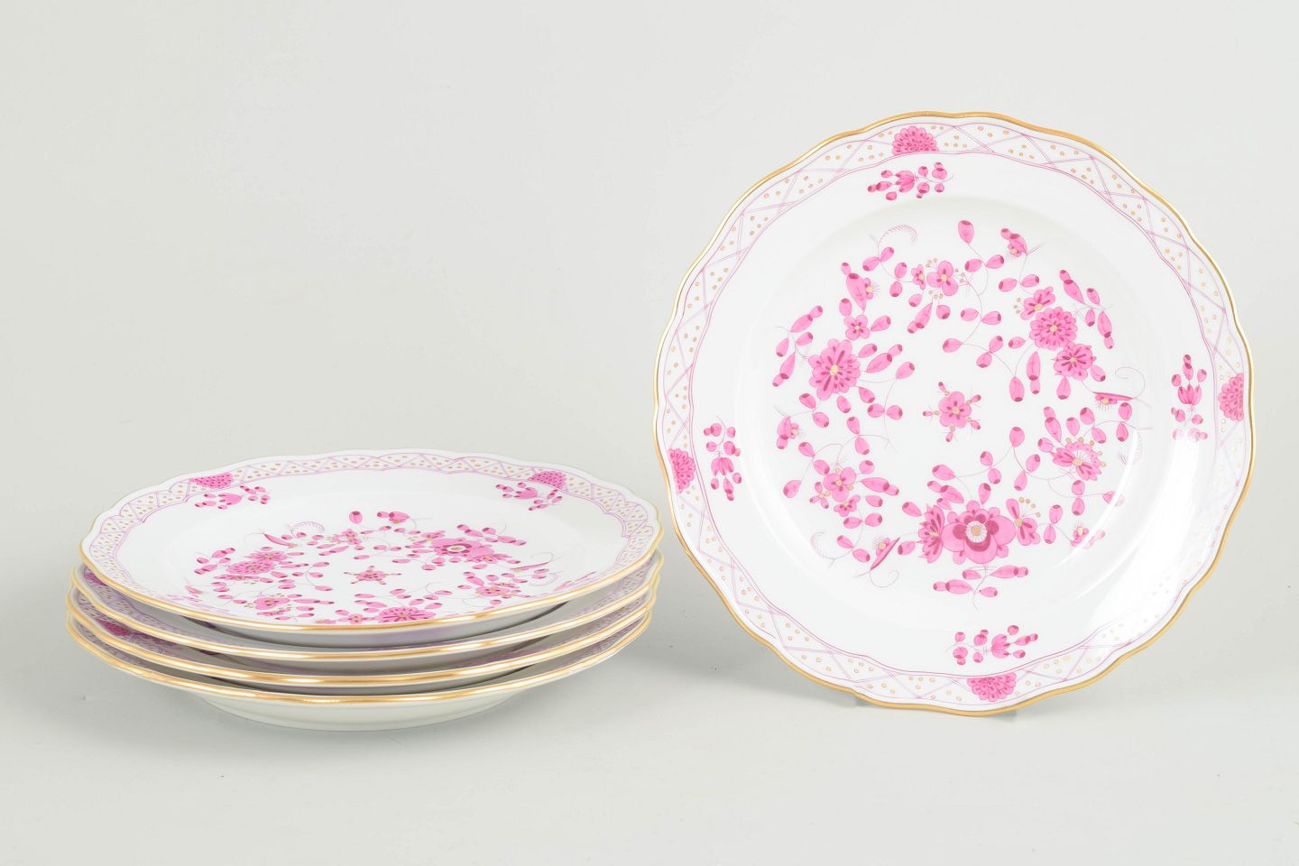 Meissen, "Pink Indian" sæt af fem frokosttallerkener.