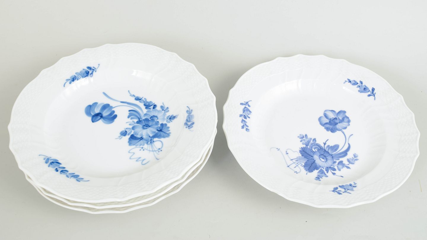 Royal Copenhagen Blue Flower Curved, set of four dinner plates.
