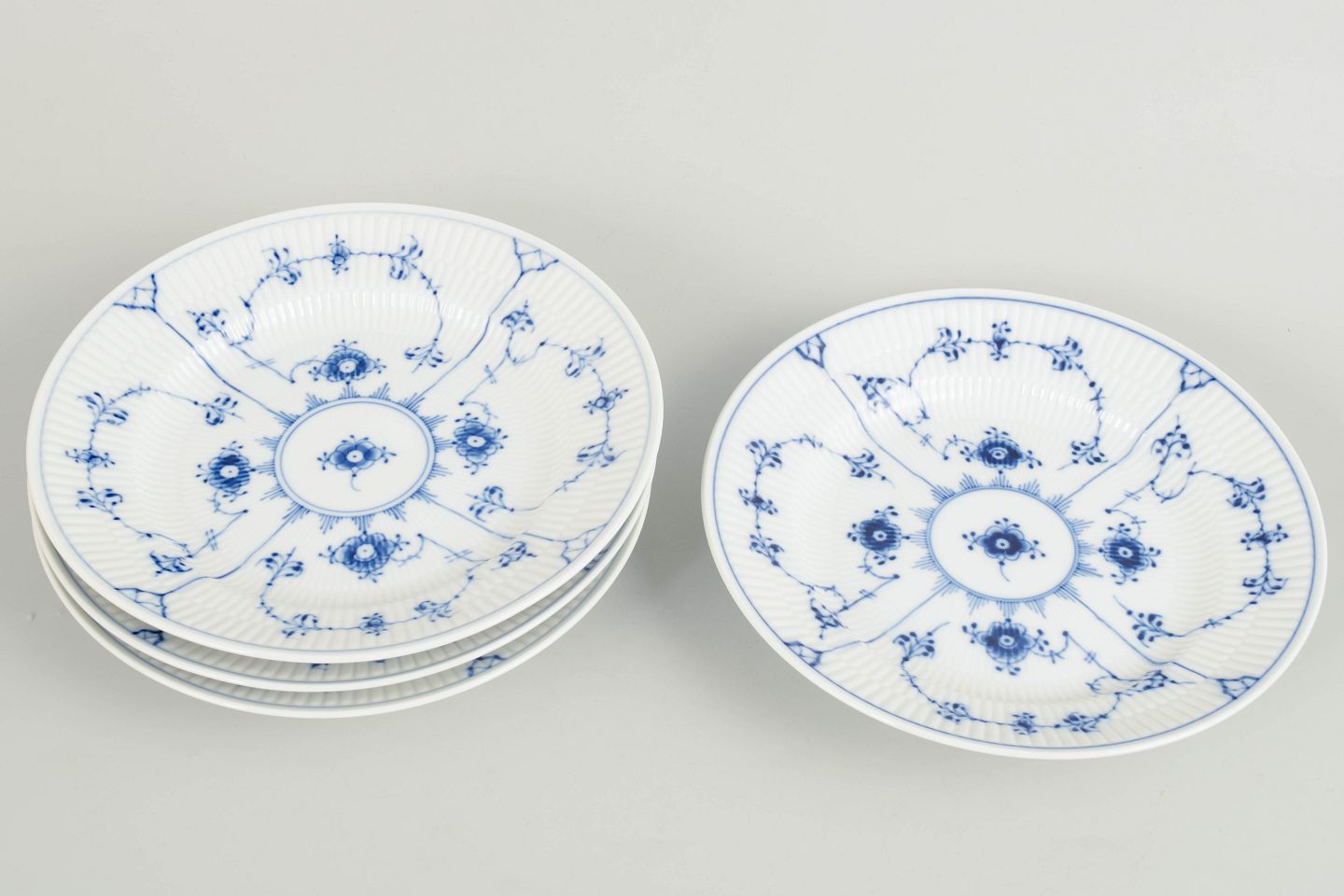 Royal Copenhagen Blue Fluted Plain set of four lunch plates.