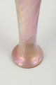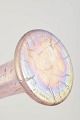 Høj, slank vase i mundblæst glas med iriserende overflade i rosa og gyldne nuancer. Den elegante trompetform og den fine, metalliske glans er karakteristisk for Loetz’ produktion i mellemkrigstiden og afspejler arbejdet med iriserede dekorationer efter art nouveau-periodens højdepunkt.