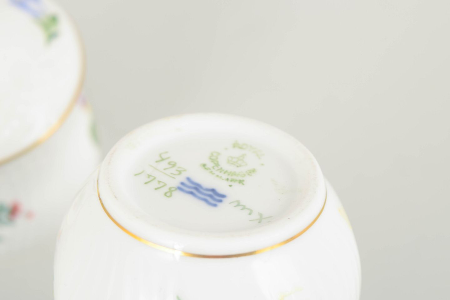 Håndmalet porcelæn dekoreret med saksisk blomst, model 493/1778. Første sortering.
