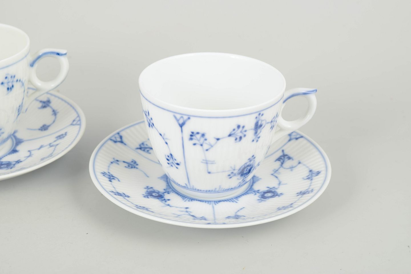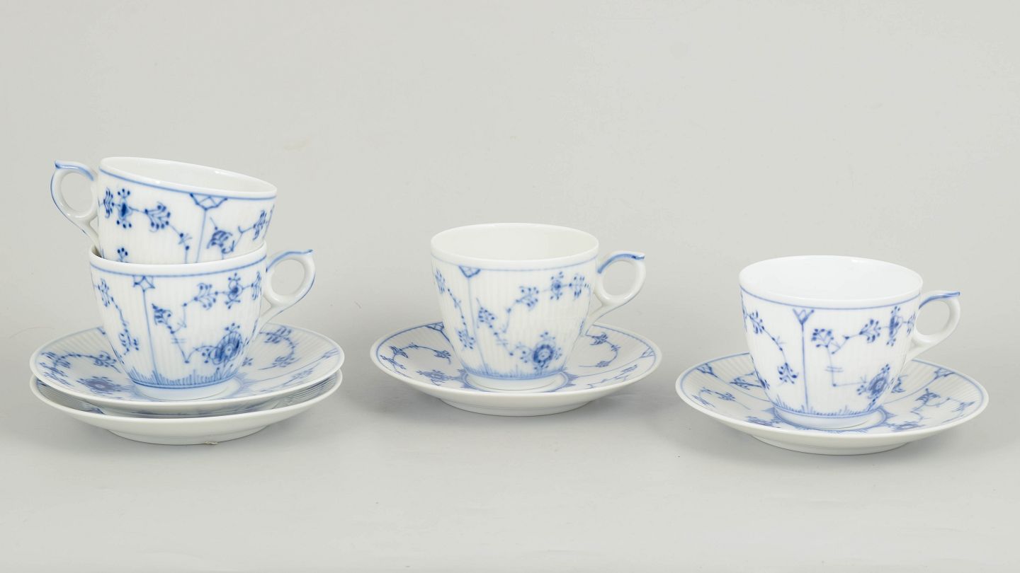 Royal Copenhagen Blue Fluted Plain, set of four coffee cups with saucers.