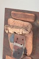 Abstract wall relief executed as a collage of different wooden elements mounted on a wooden panel. The composition consists of driftwood-like fragments and roughly worked wood pieces showing natural textures, patina and age-related surfaces.