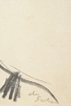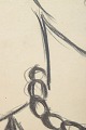 Art deco portrait drawing executed on paper with elegant and economical line work. The composition depicts a stylised female portrait with short hair and a necklace, rendered in a simplified graphic style characteristic of modernist drawing from the 1930s. Signed in pencil lower right.