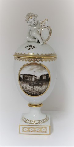 Royal Copenhagen. Lid vase with putti on top. Heig