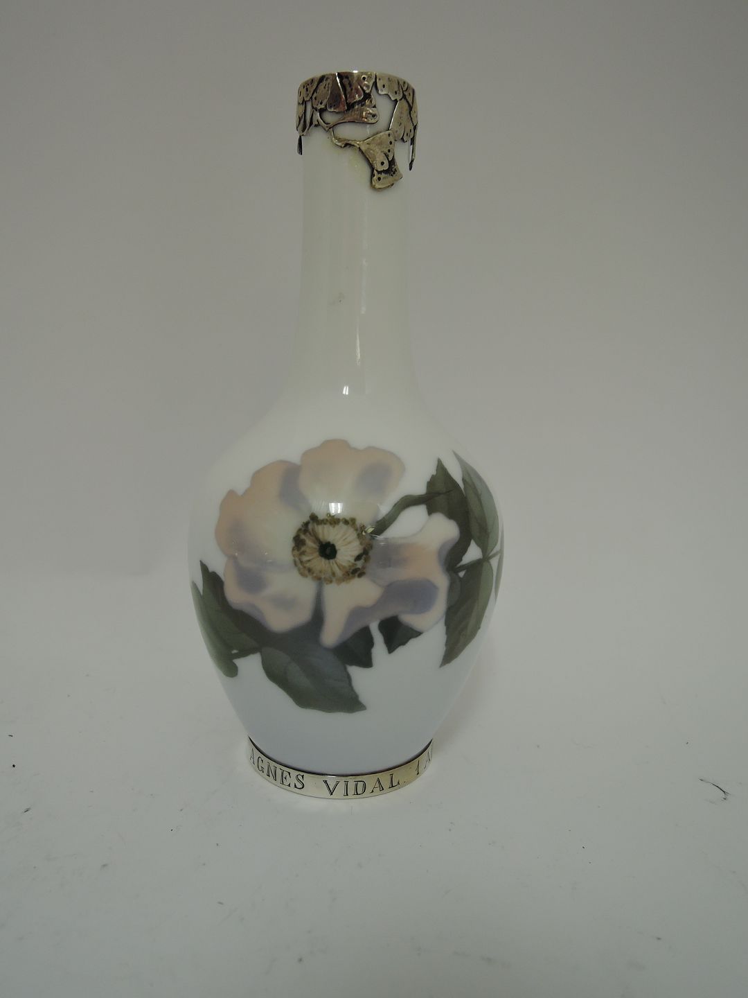 Royal Copenhagen. Vase with silver mounts. Produced before 1923. Silver hallmarked 1909. Height 14 cm. (1 quality)