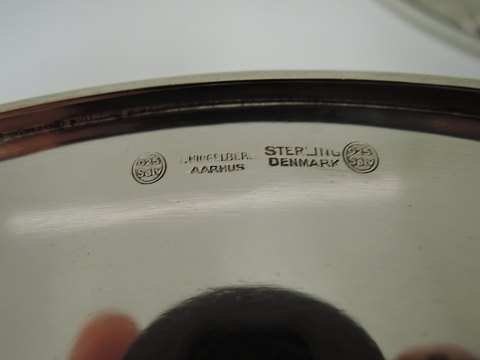 Hingelberg. Sterling (925). Lågfad. Diameter 25 cm (uden hanke). Producered 1937-1944