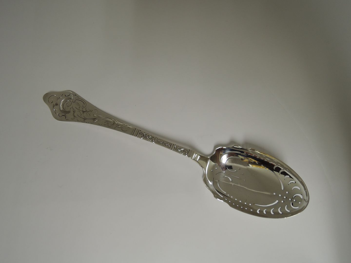 Antique Rokoko. Silber (830). Erdbeere Löffel. Länge 26 cm. Produziert 20 cm.