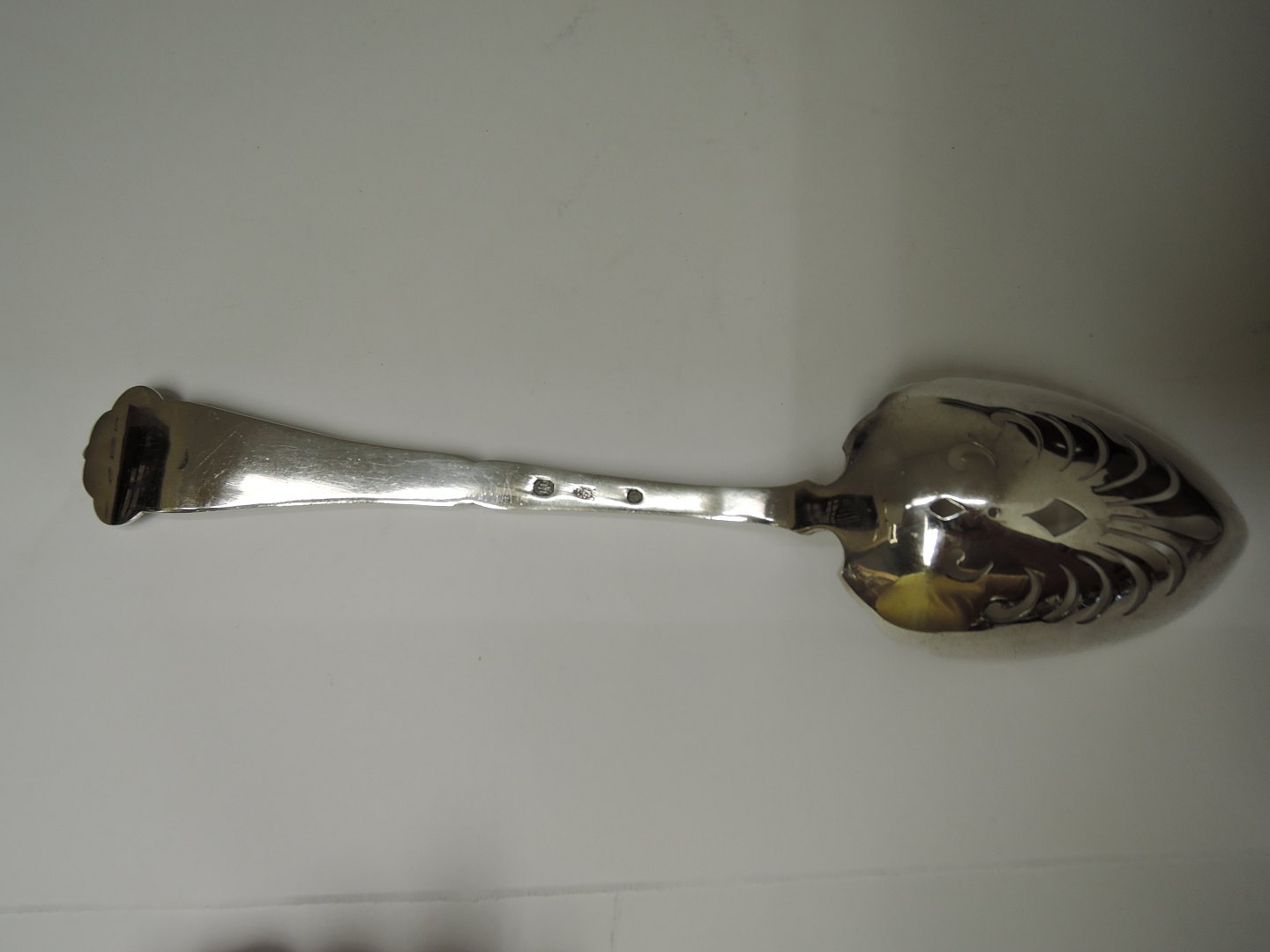 Jordbærske. Sølv (830). Produceret 1921. Længde 26 cm