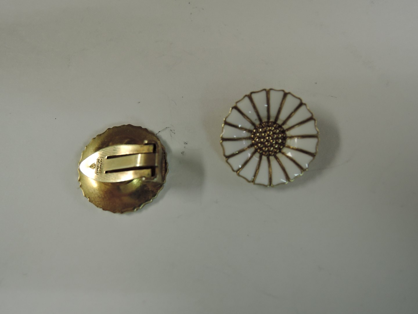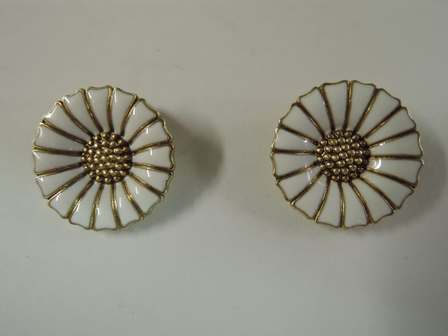 Michelsen . Sterling (925). Marguerite Ohrring mit weißer Emaille. Durchmesser 1,7 cm