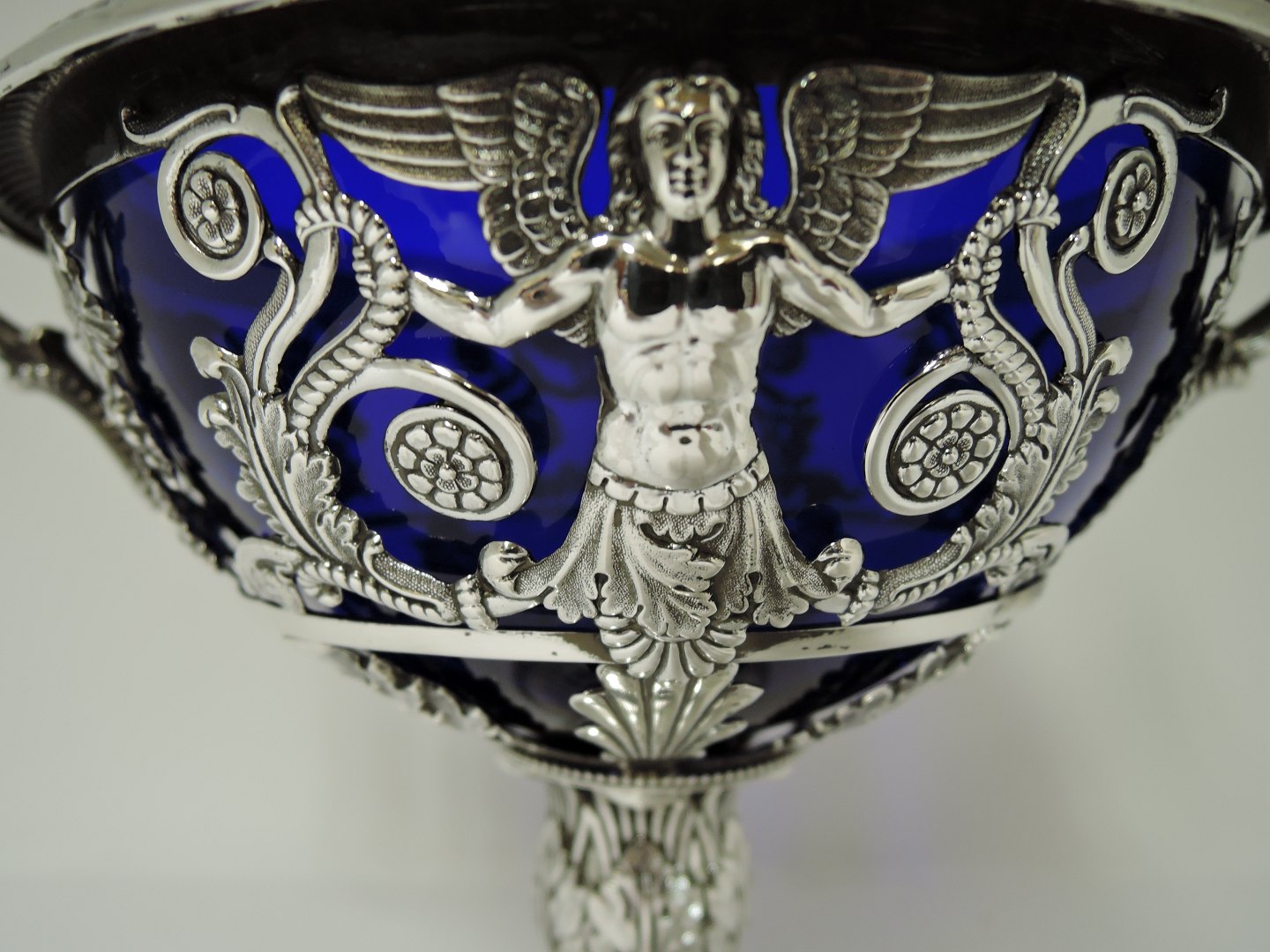 L. Berth. Silver (830). Kandis bowl with blue glass insert. Height 16 cm.