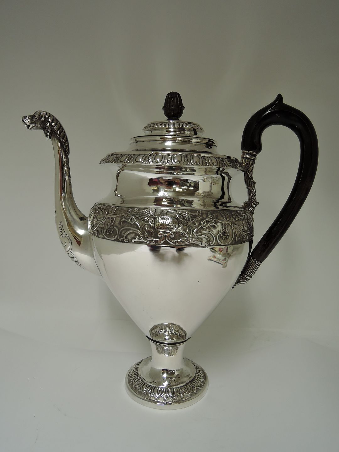 Coffee pot. Silver (830). Late Empire. Produced in Copenhagen 1835. Height 28 cm.