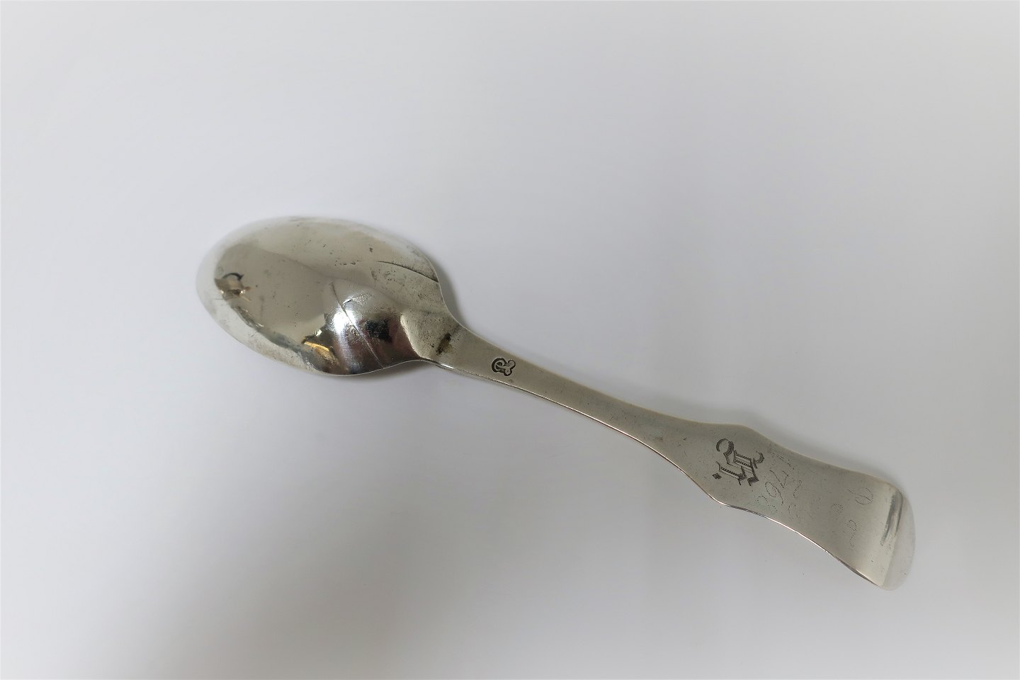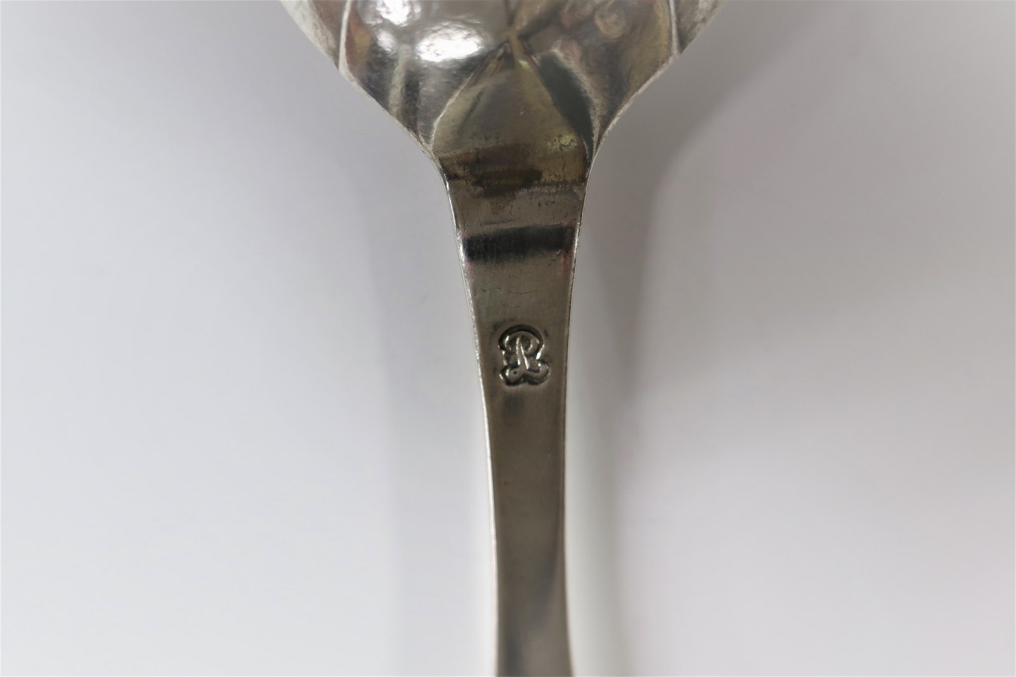 Ålborg. Sølvsmed Povel Knudsen Lund. Antik sølvske produceret mellem 1767 - 1794.