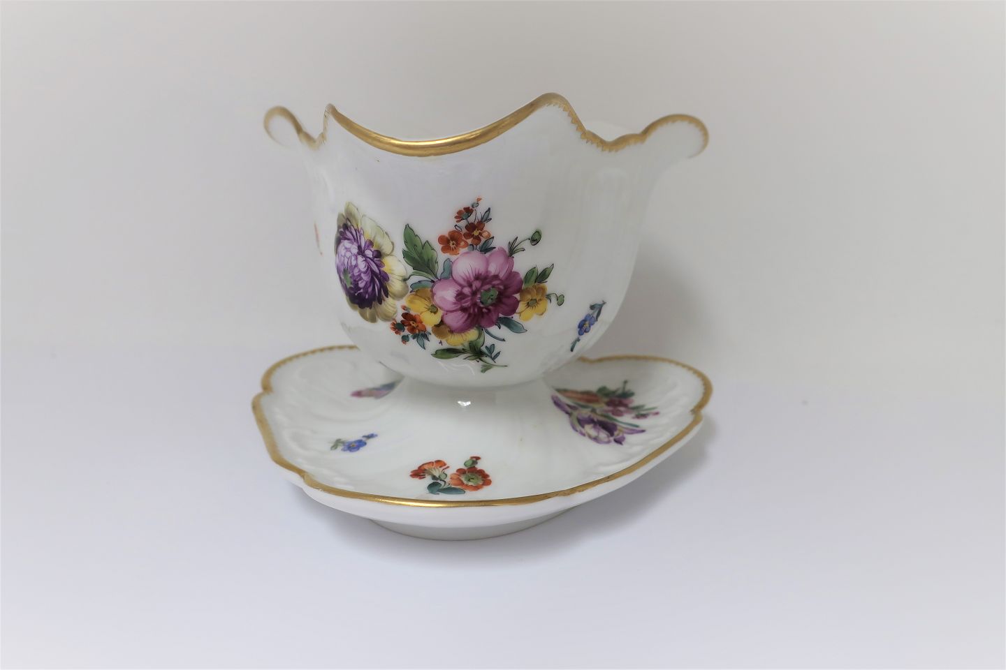 Royal Copenhagen. Saksisk blomst. Sauceskål. Model 1758. Højde 12 cm. (1 sortering)