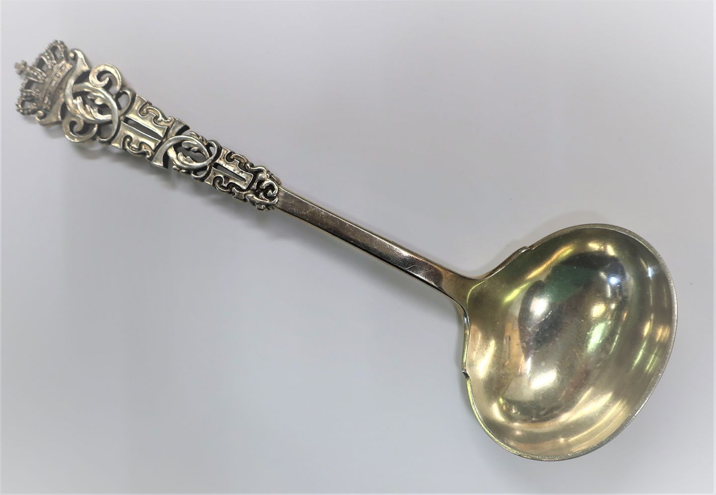 Michelsen. Fir kongeske mønster. Sauceske. Længde 19 cm. Produceret 1901.