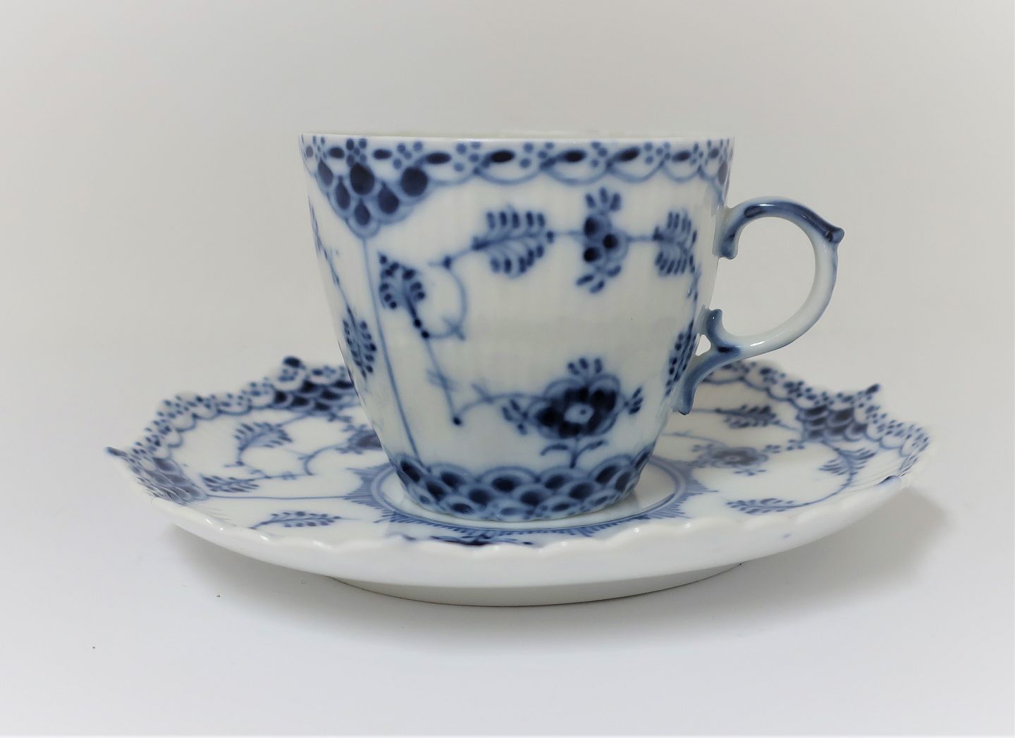 Royal Copenhagen. Musselmalet helblonde. Mokkakop. Model 1037. (2 sortering).
