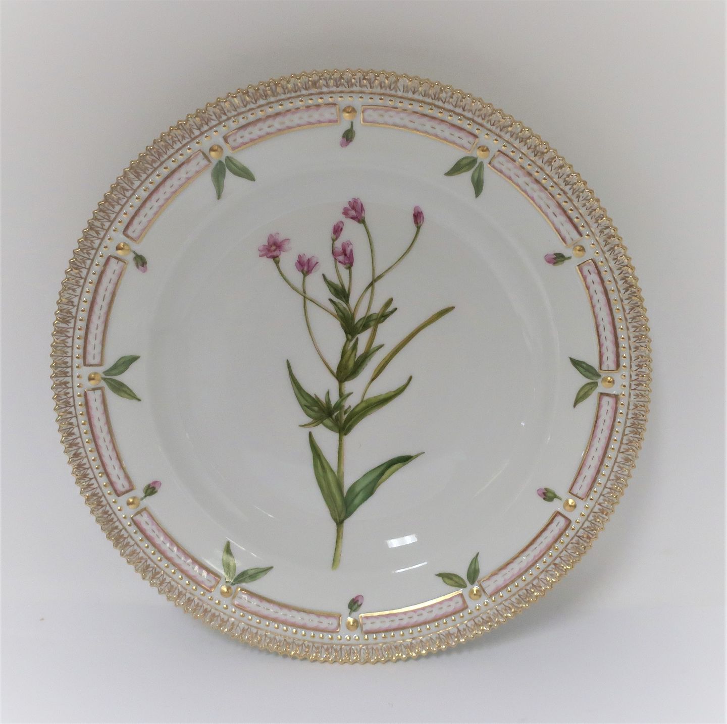 Royal Copenhagen, Flora Danica. Middags tallerken. Design #3549. Diameter 25 cm. (1 sortering). Epilobium pubescens Roth