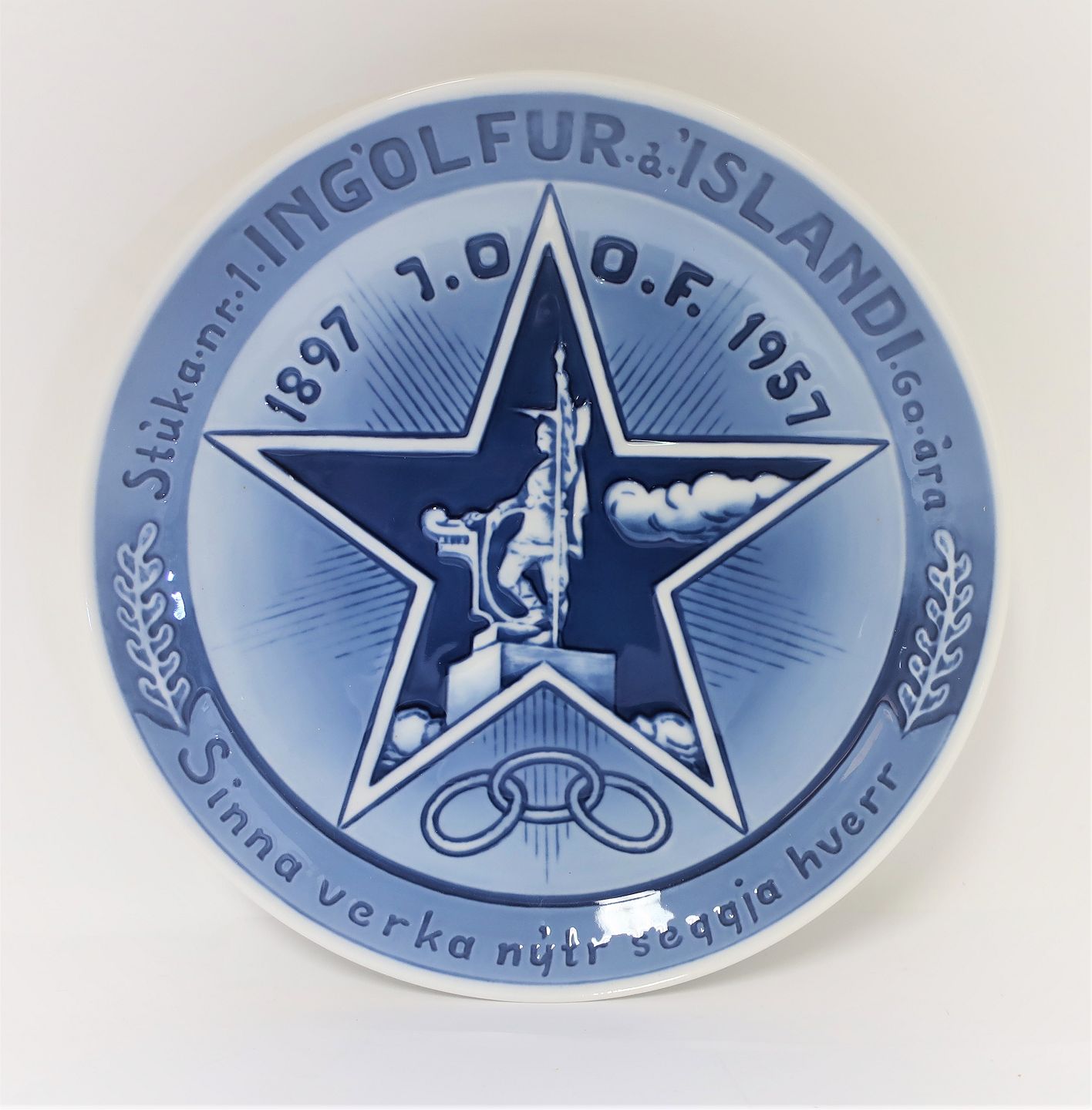Bing & Grondahl. Memorial plate. Iceland. Odd Fellow orders 60th anniversary. 1957. Diameter 23 cm.