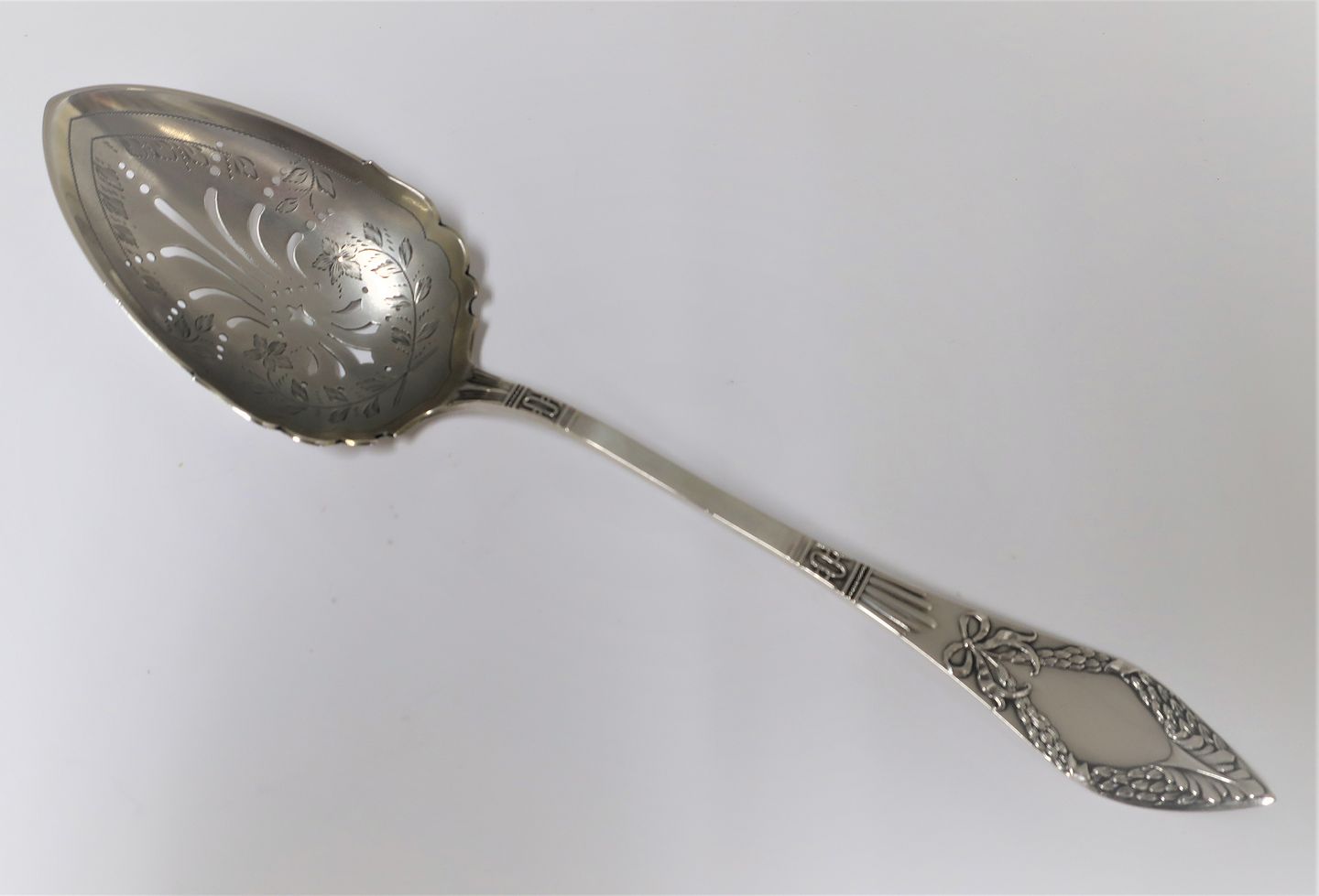 Silver strawberry spoon (830). Length 27 cm. Produced 1907