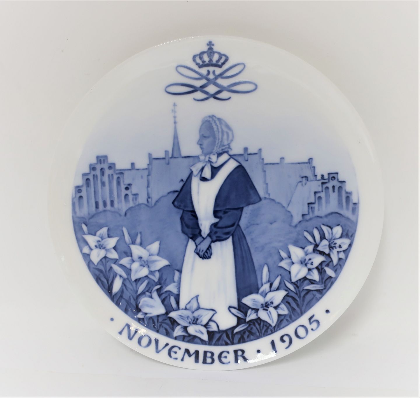 Königliches Kopenhagen. Kleine Gedenk Teller Nr. 57. Die Diakonissenstiftung. Durchmesser 20 cm. Produziert 1905. Entworfen von Christian Thomsen