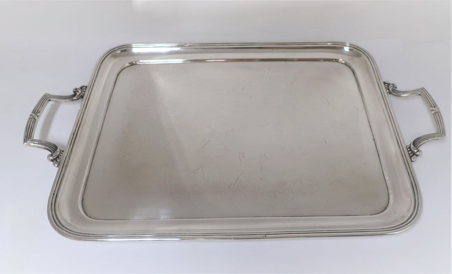 Russian silver tray (84). Length 35 cm + handle. Width 27 cm.
