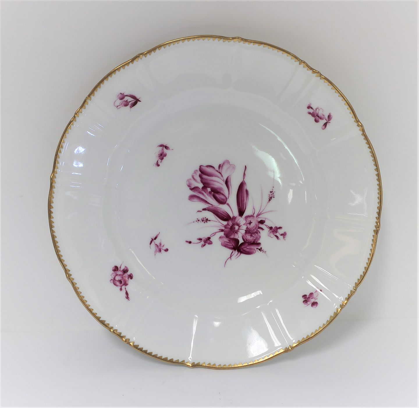 Bing & grøndahl. Hamlet. Med purpur farvet blomst og takket guldkant. Middagstallerken. Diameter 25 cm. Der er 11 styk på lager. Prisen er per styk.