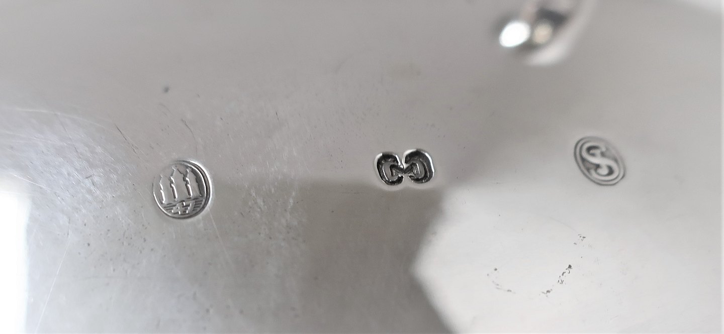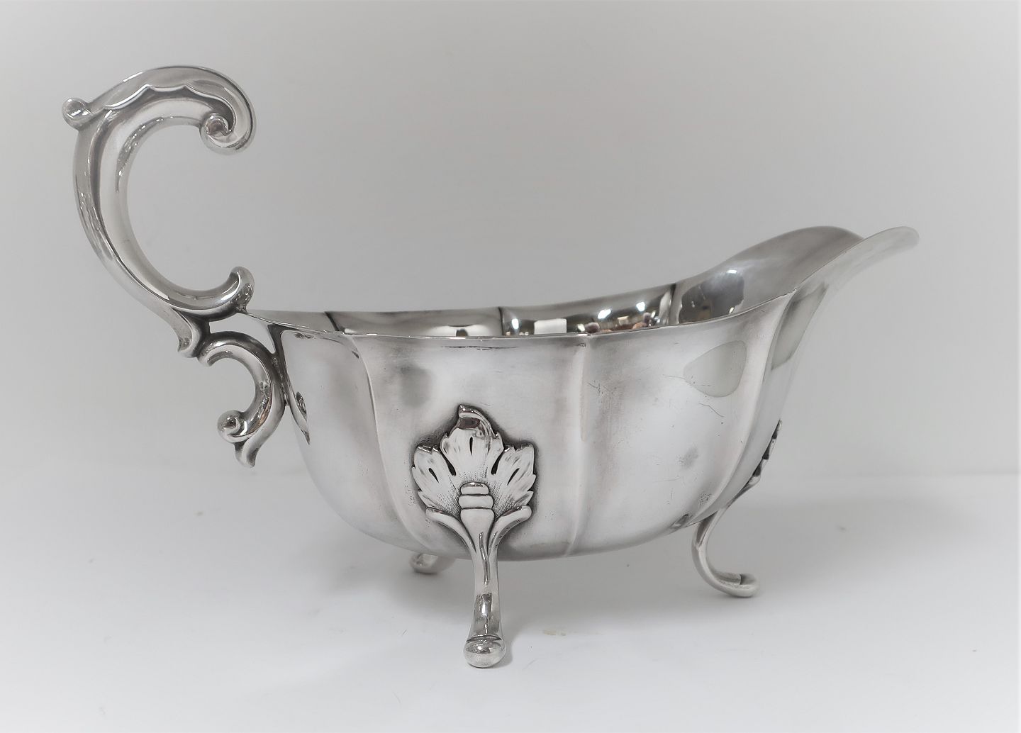 Cohr. Sølv saucenæb / sauceskål (830). Længde 21 cm. Produceret 1947.