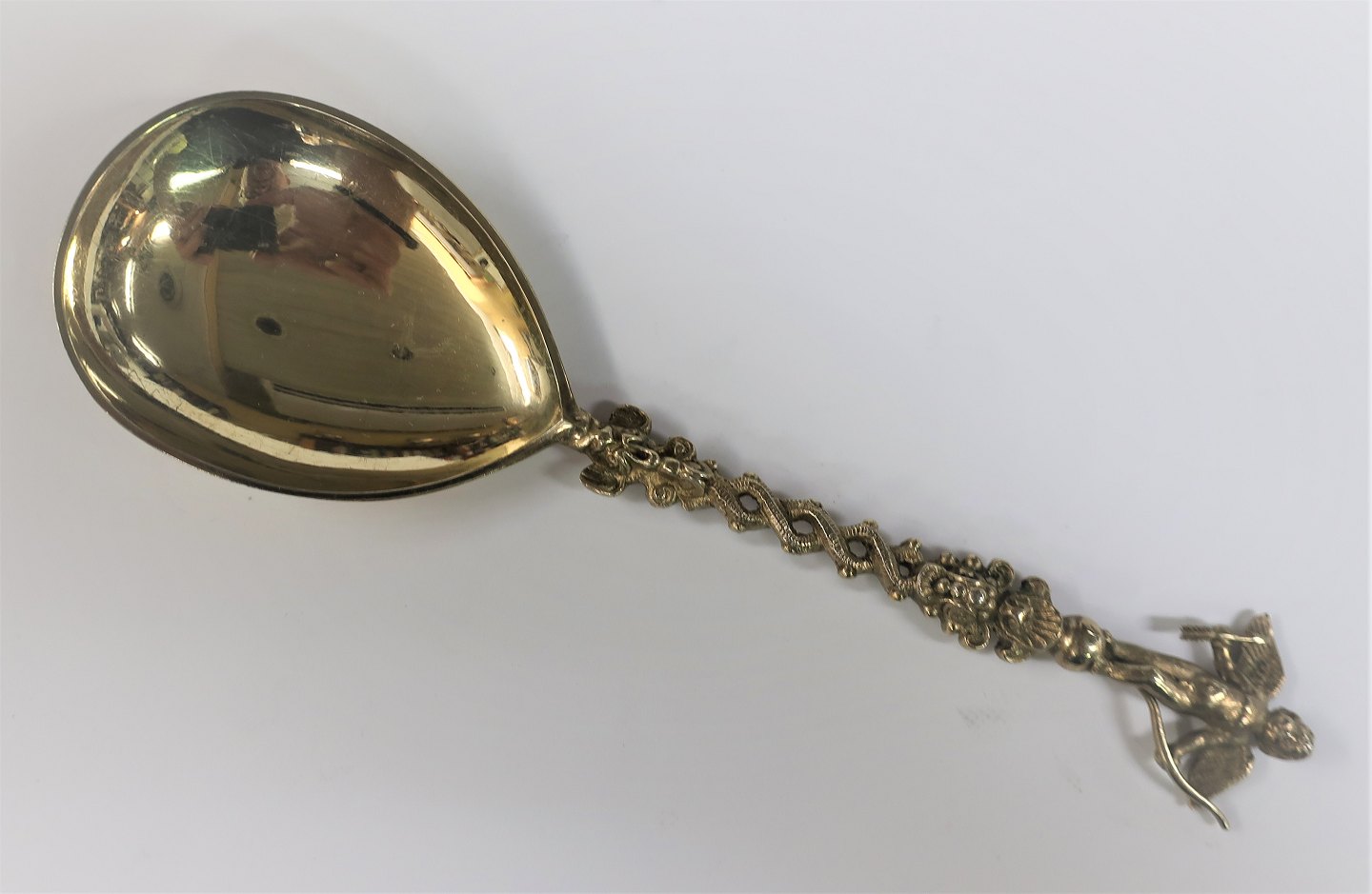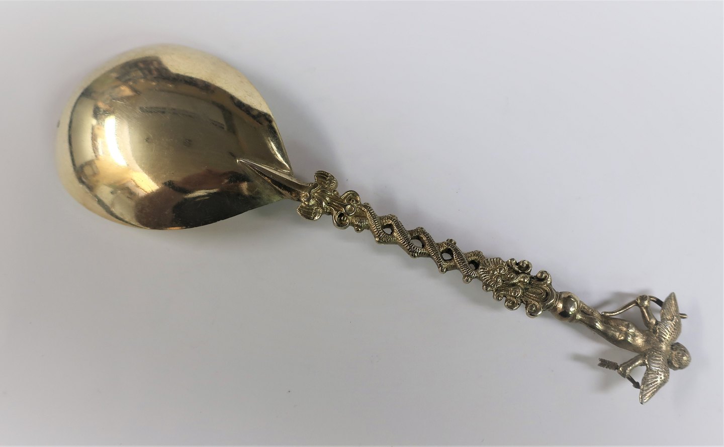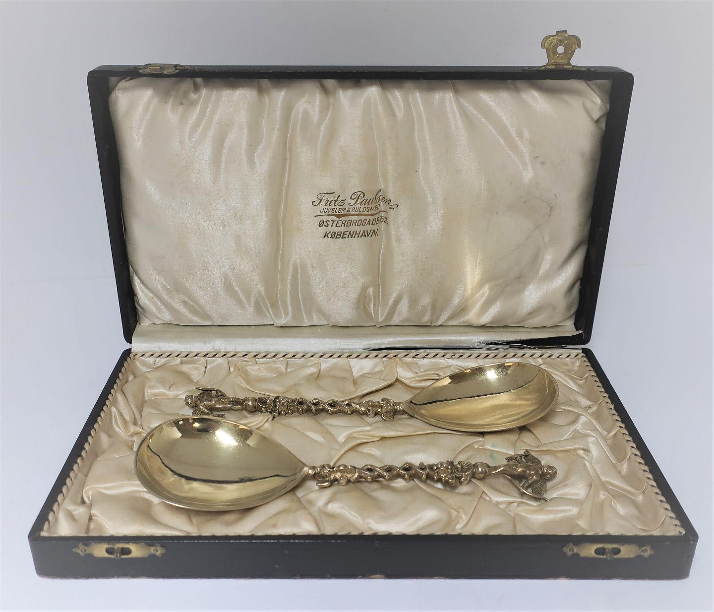 A. Dragsted. Et par sølv skeer forgyldte (830). Længde 17 cm. Produceret 1898.