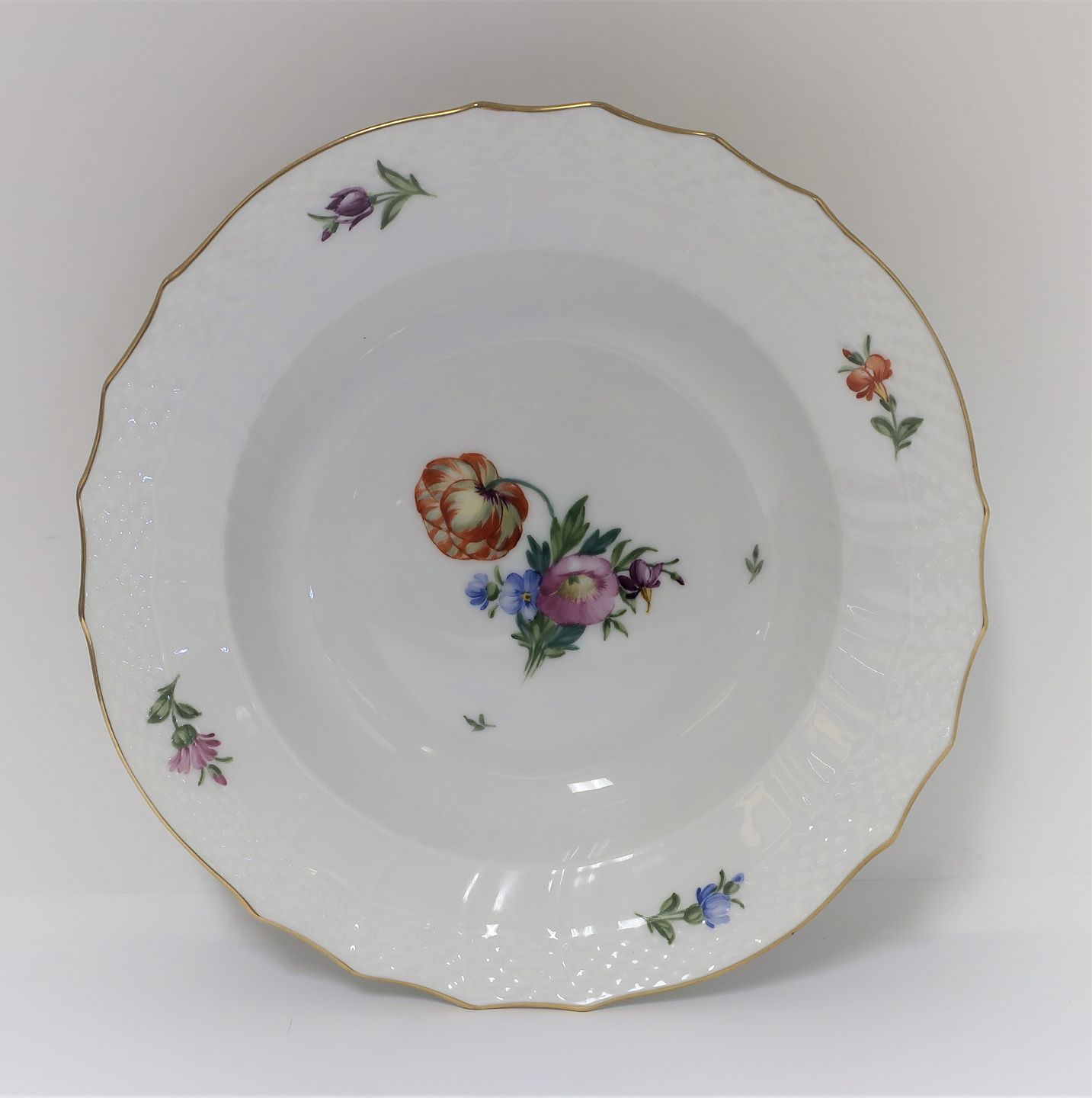 Königliches Kopenhagen. Lichtsächsische Blume. Tiefer Suppenteller. Modell 493/1615. Durchmesser 23,5 cm. (1 Wahl). Es sind 5 Stück auf Lager. Der Preis ist pro Stück