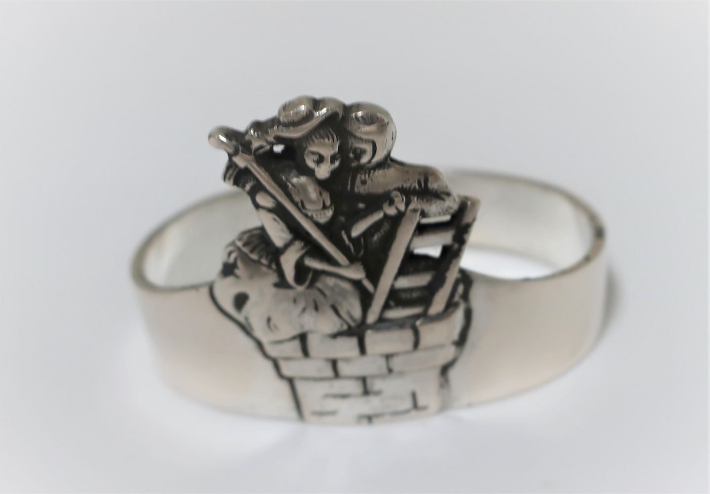 Sølv servietbånd (830). H. C. Andersen eventyr. Hyrdinden og skortsensfejeren