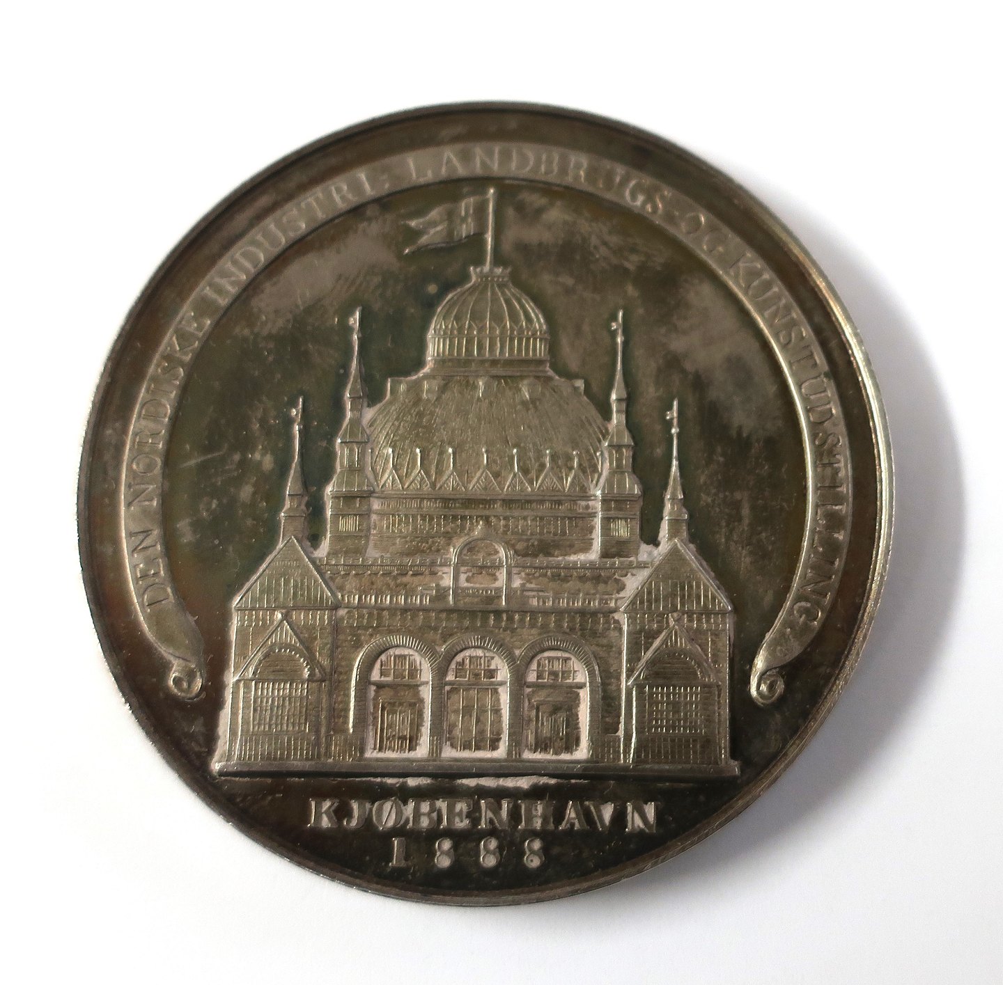 Sølv medalje. Den nordiske Industri-Landbrugs og Kunstudstilling. København 1888. Diameter 54 mm.