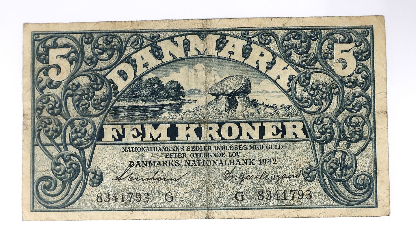 Danmark. Pengeseddel 10 kr. 1945 a. Kvalitet 1+