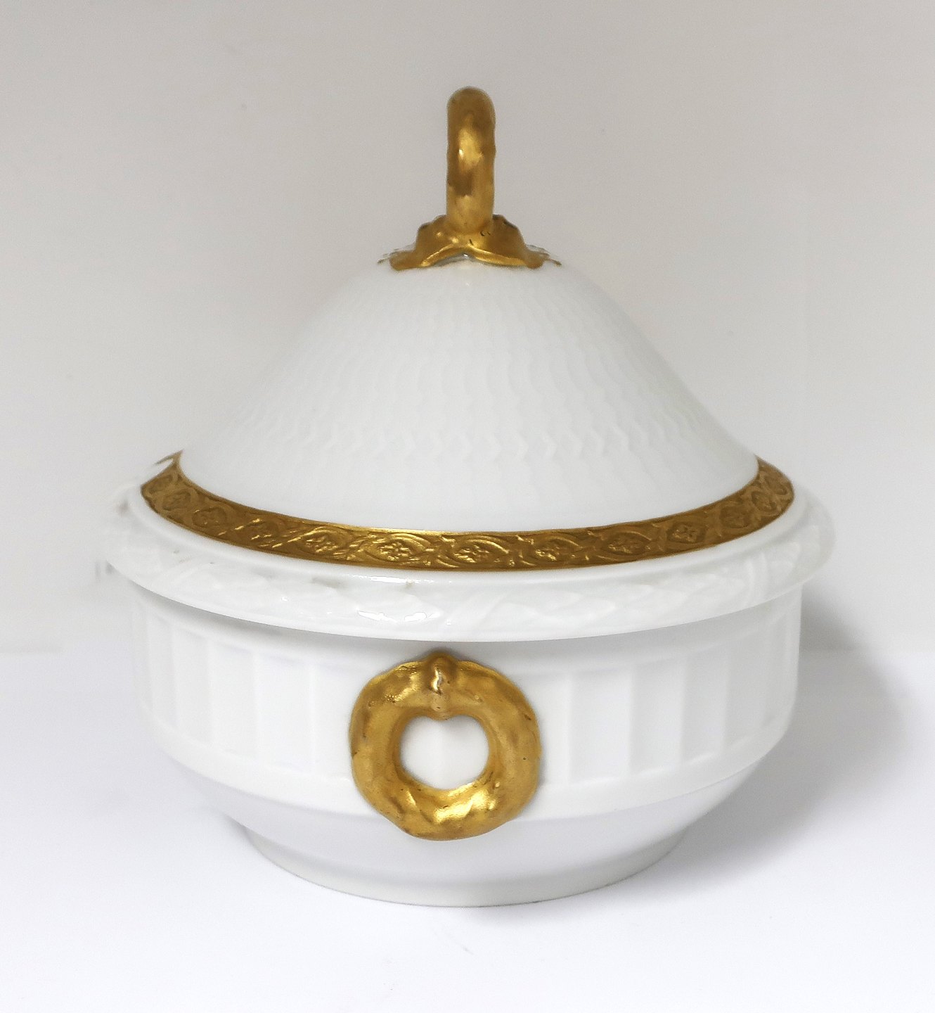 Royal Copenhagen. Vifte med guld. Lågskål. Model 11506. Diameter 13,5 cm. Højde 15 cm. (1 sortering).