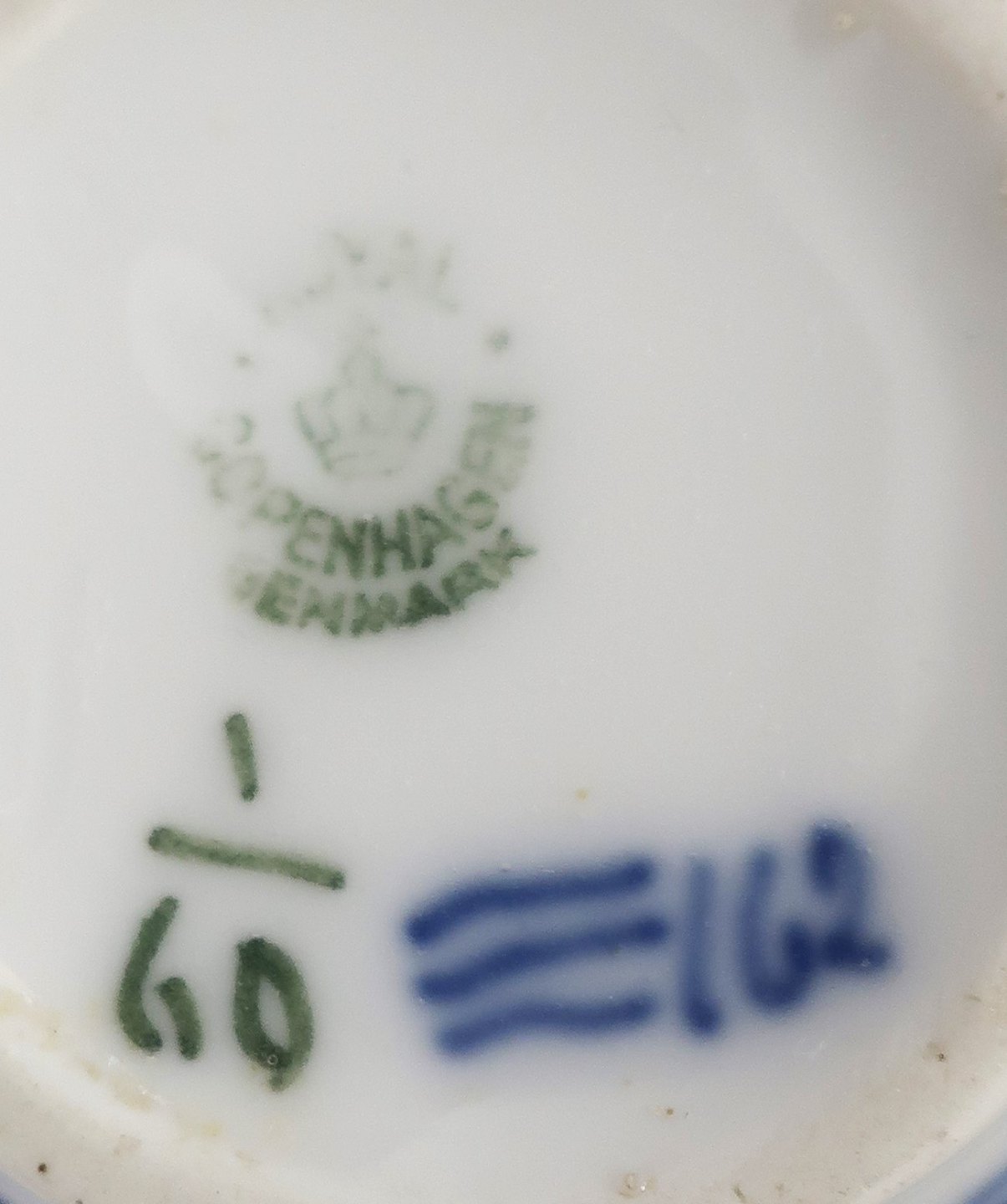 Royal Copenhagen. Musselmalet, riflet. Flødekande. Model 60. Højde 10,2 cm. (1 sortering)