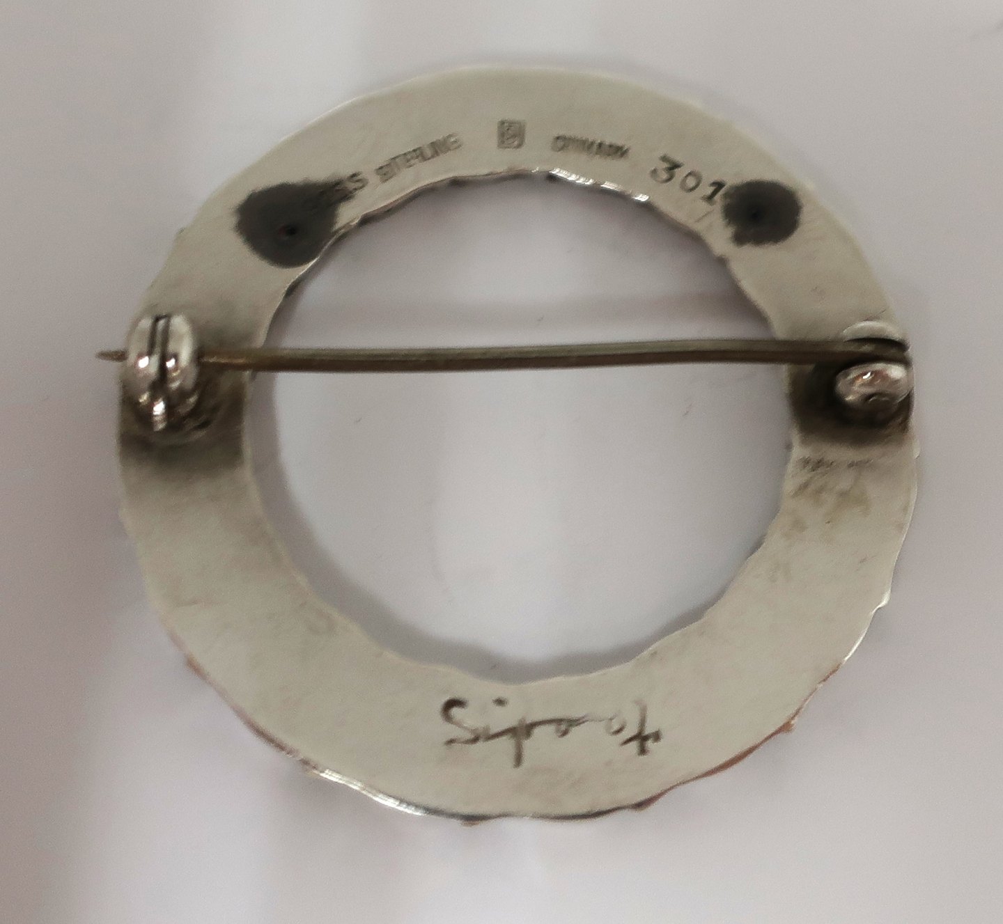 Georg Jensen. Silver brooch (925). Design Sigvard Bernadotte. Model 301. Diameter 35 mm. Produced 1933-1945
