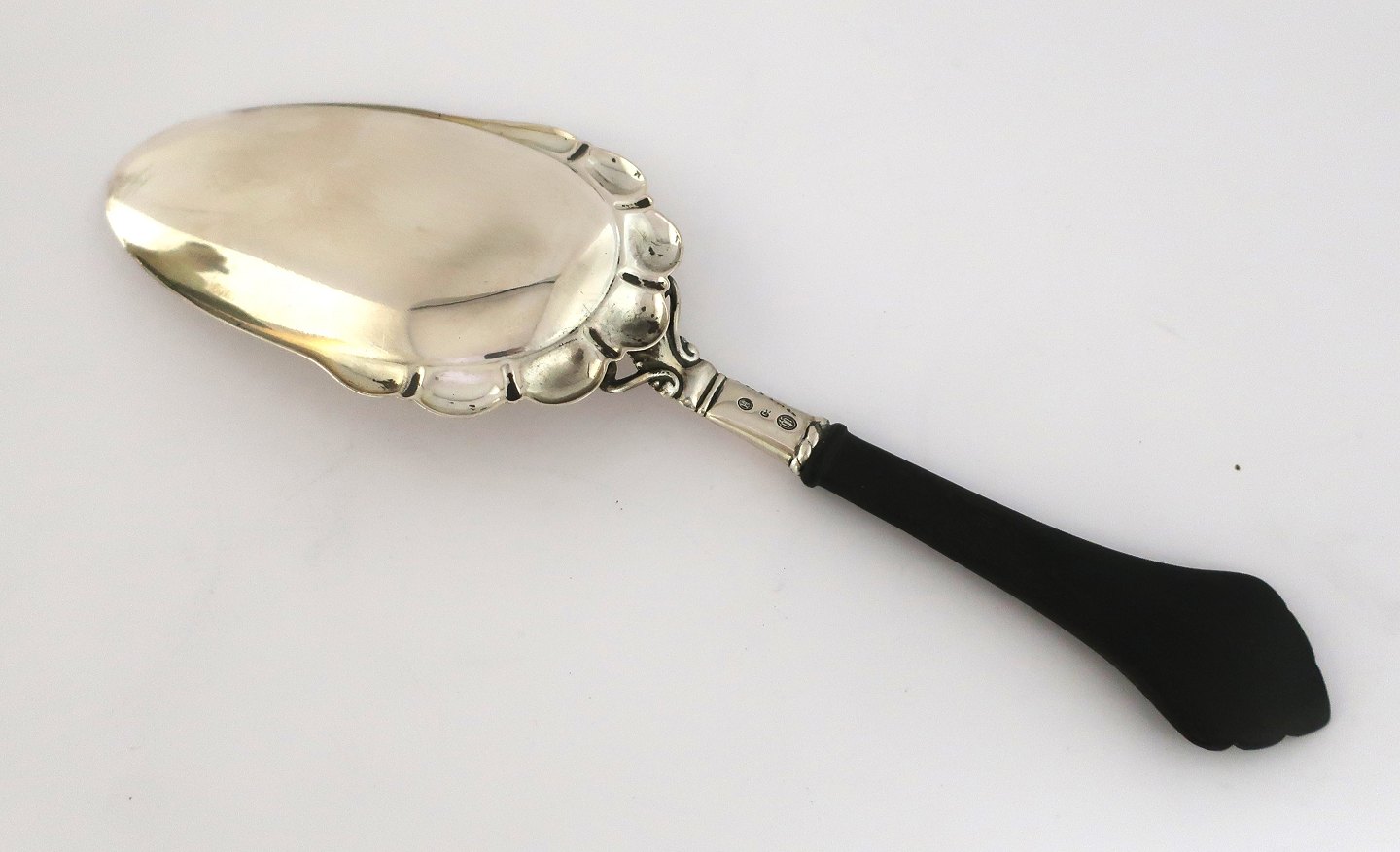Cohr. Silverware (830). Cake server with wooden handle. Length 23 cm. Produced 1927.